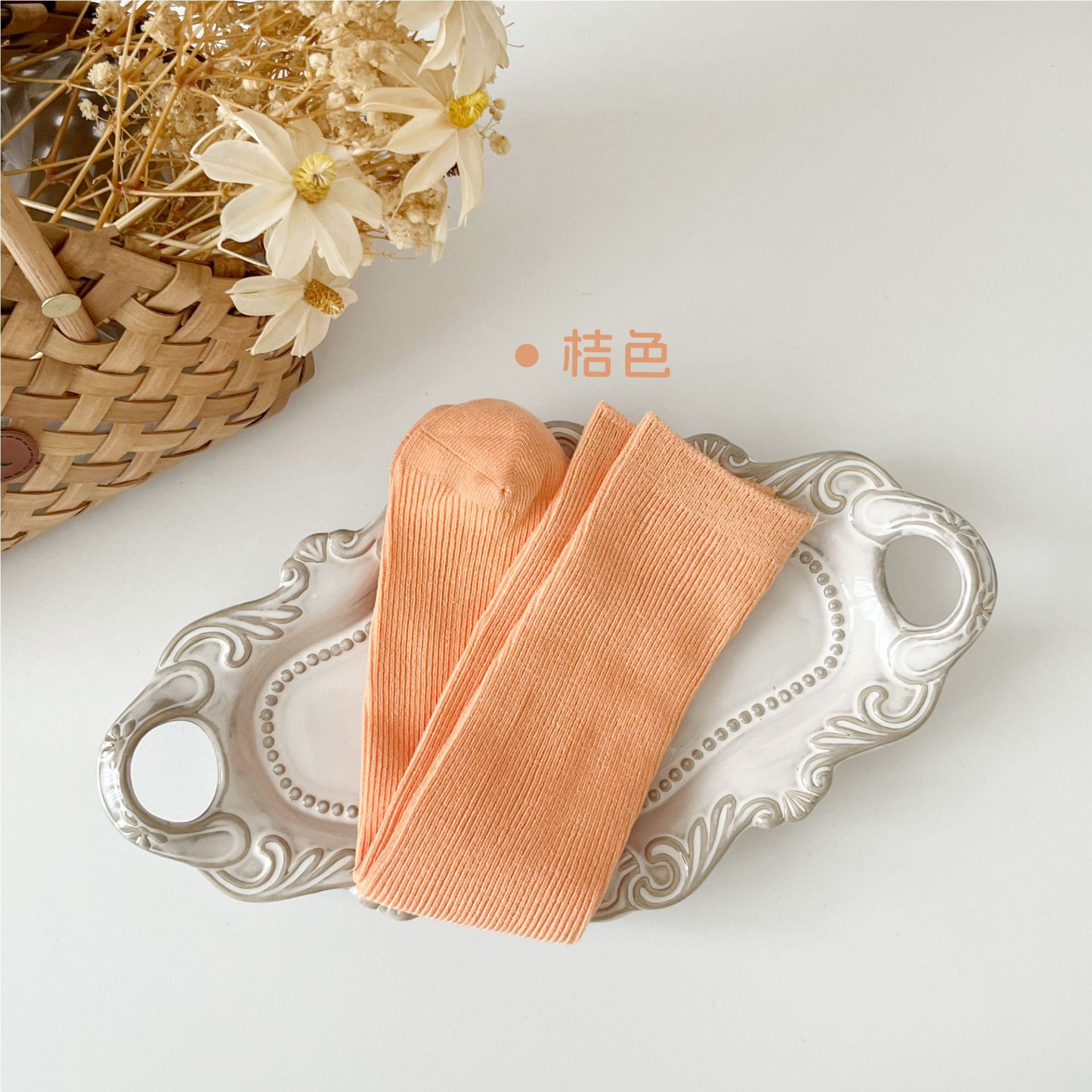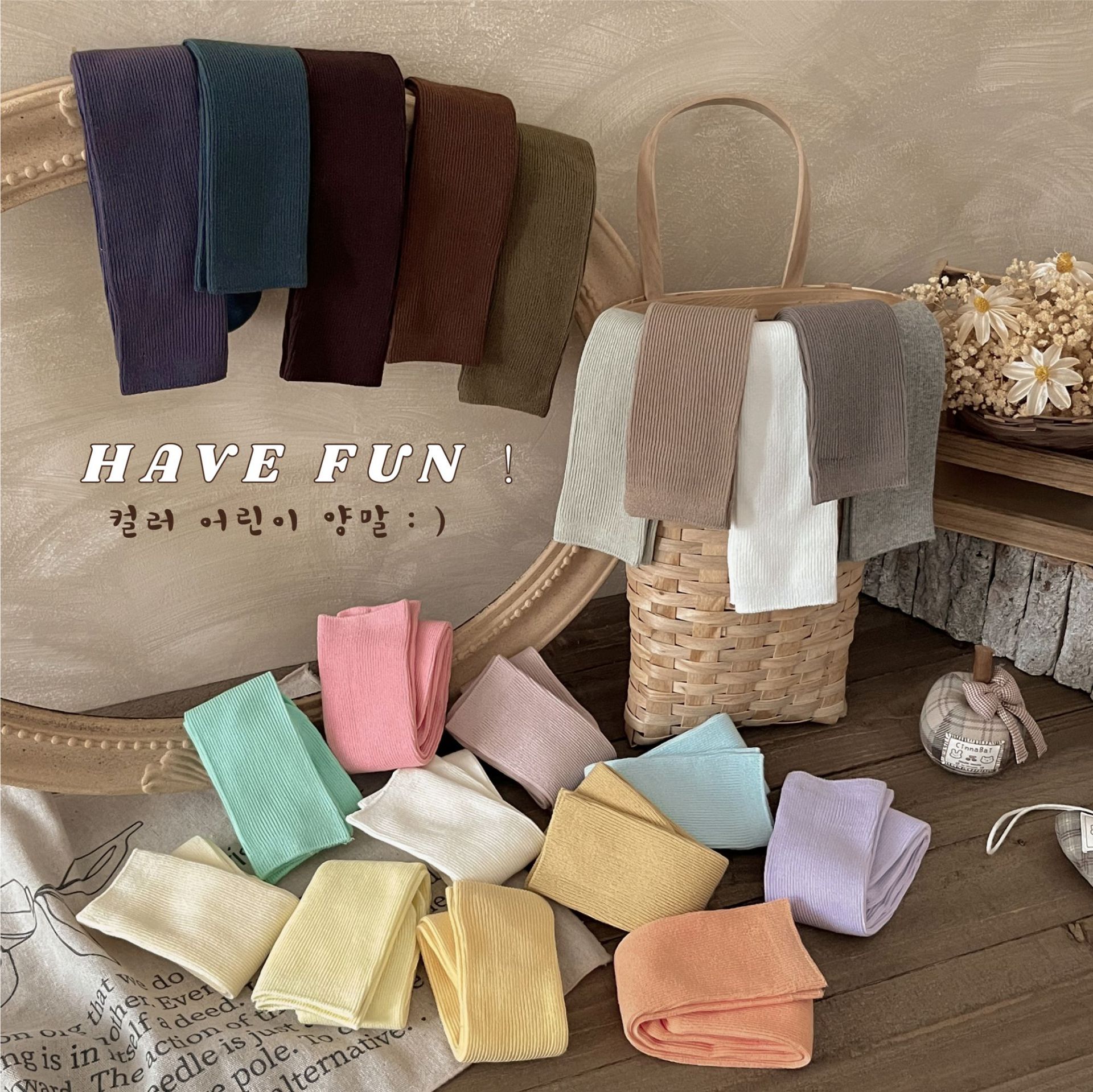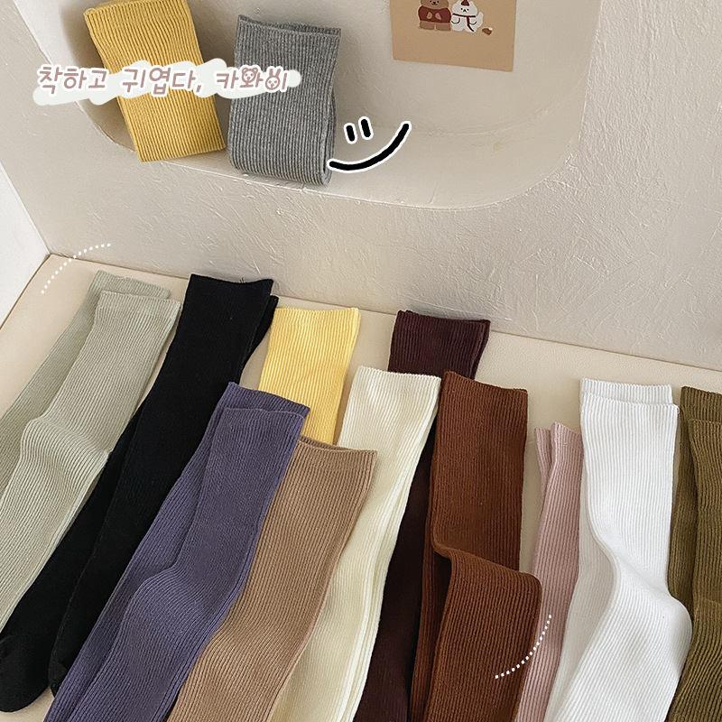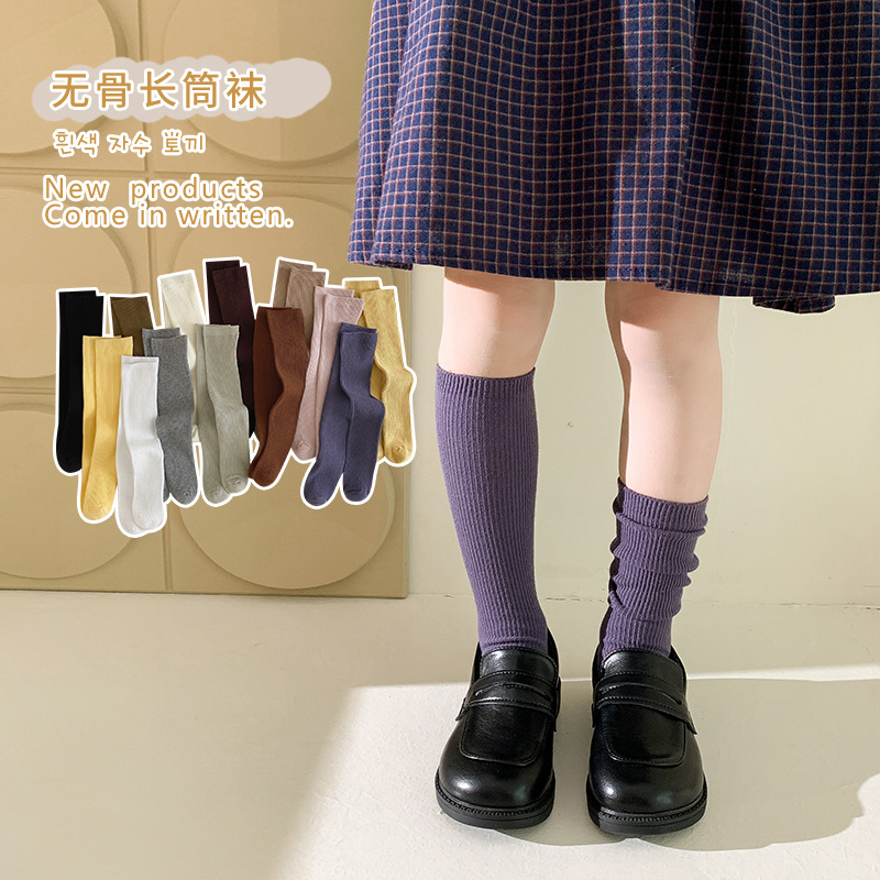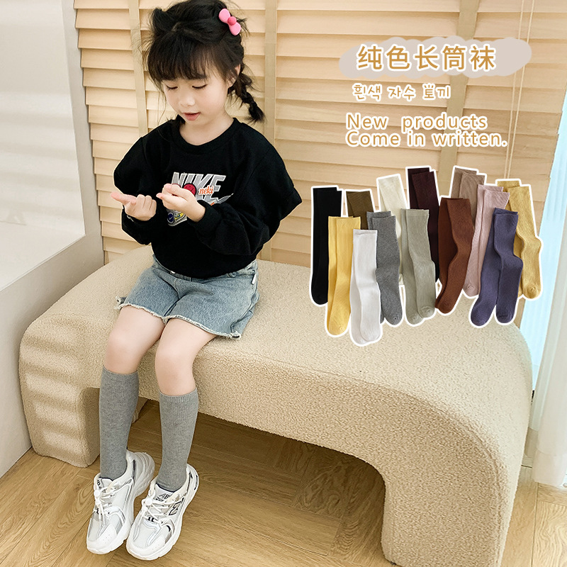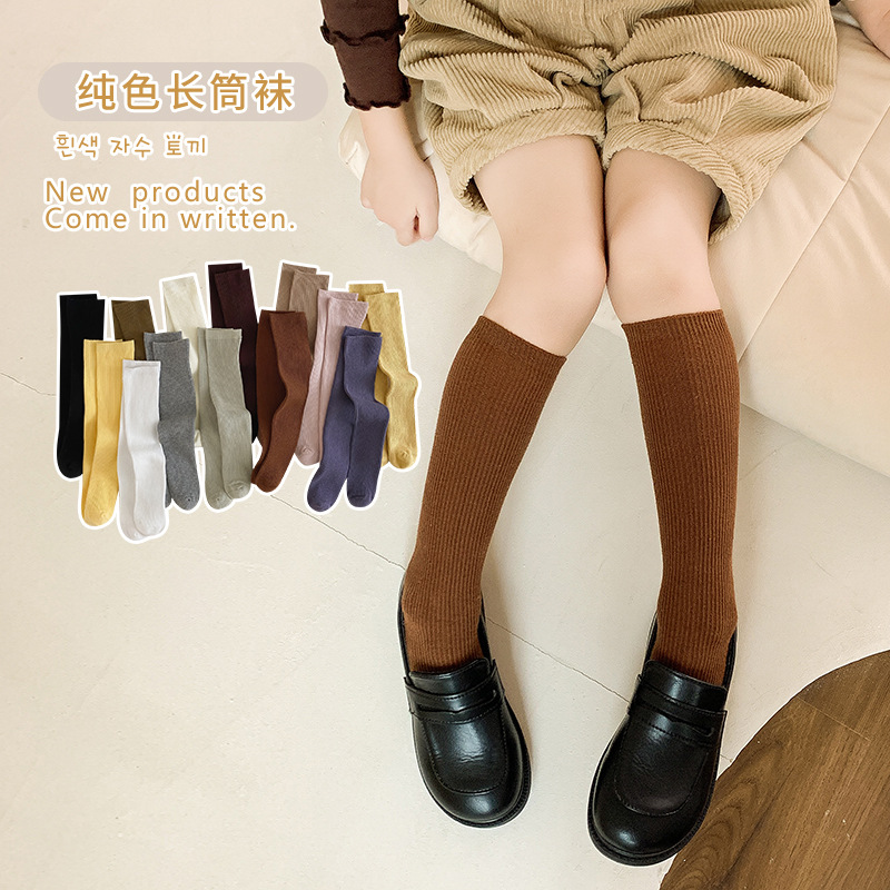 어린이 양말 도매 24 가을 새 스타킹 소년과 소녀와 무릎 양말 단색 더블 바늘 종아리 양말