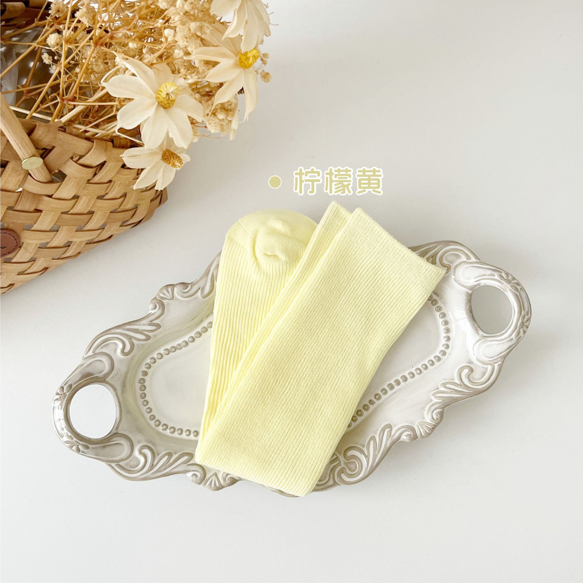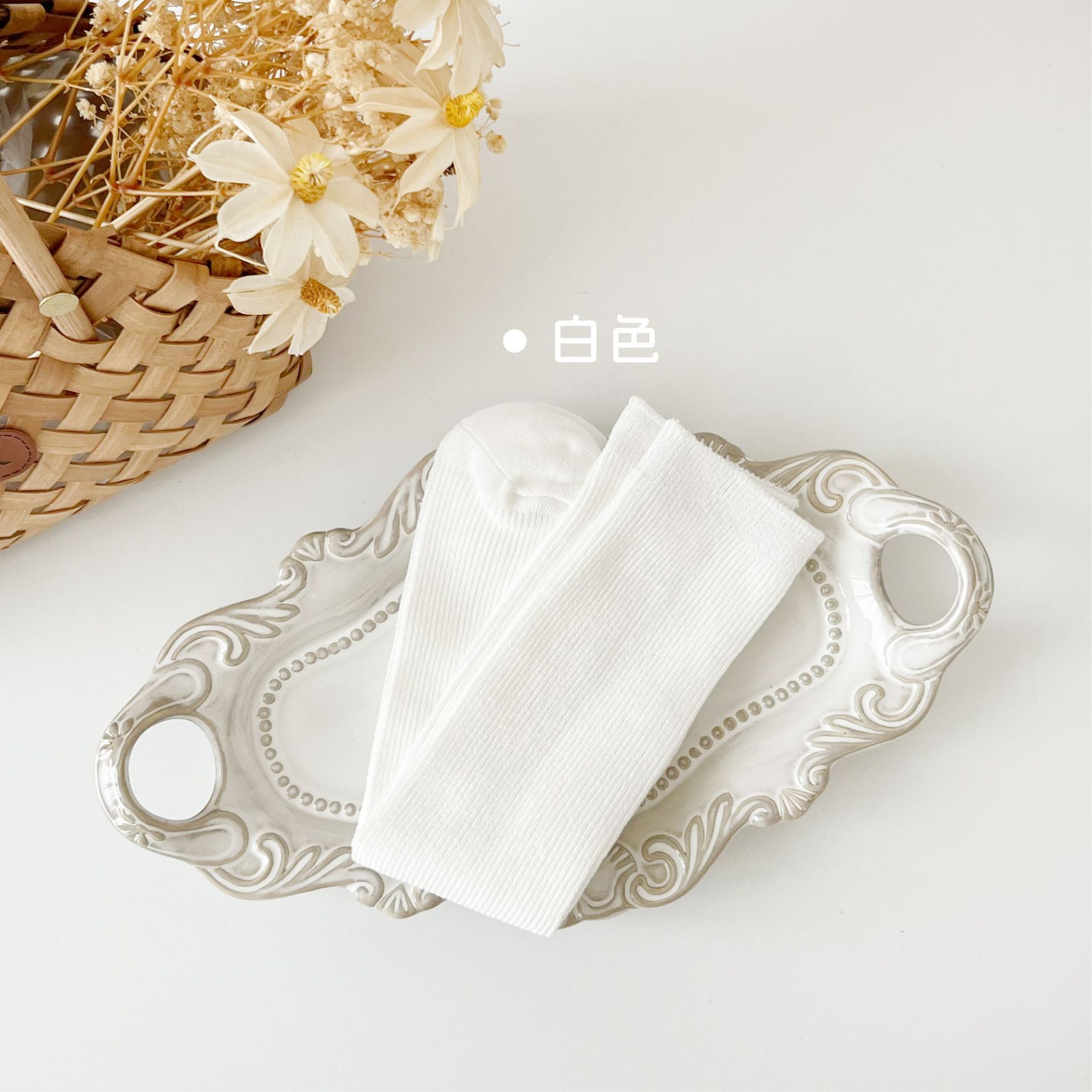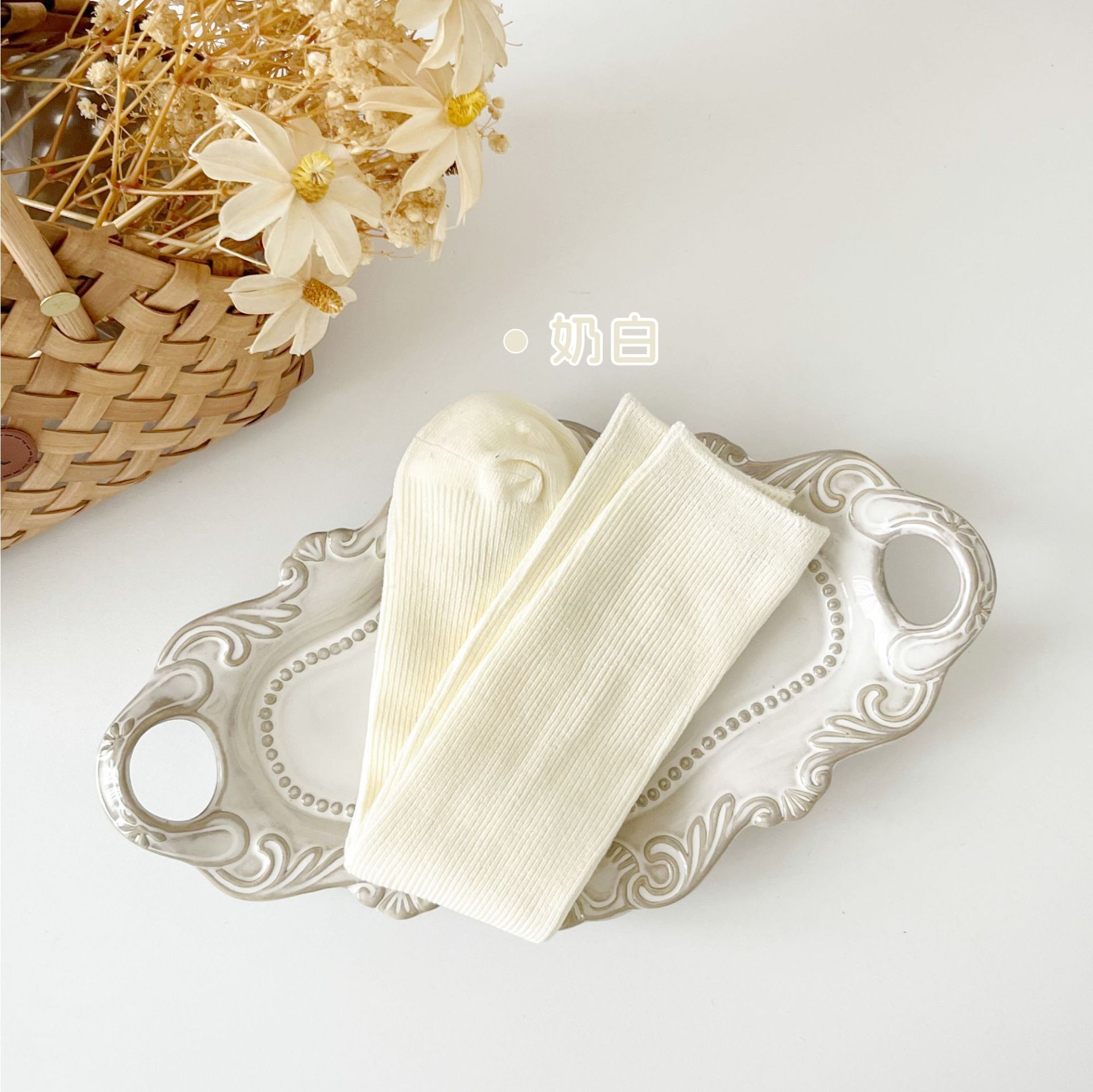 어린이 양말 도매 24 가을 새 스타킹 소년과 소녀와 무릎 양말 단색 더블 바늘 종아리 양말