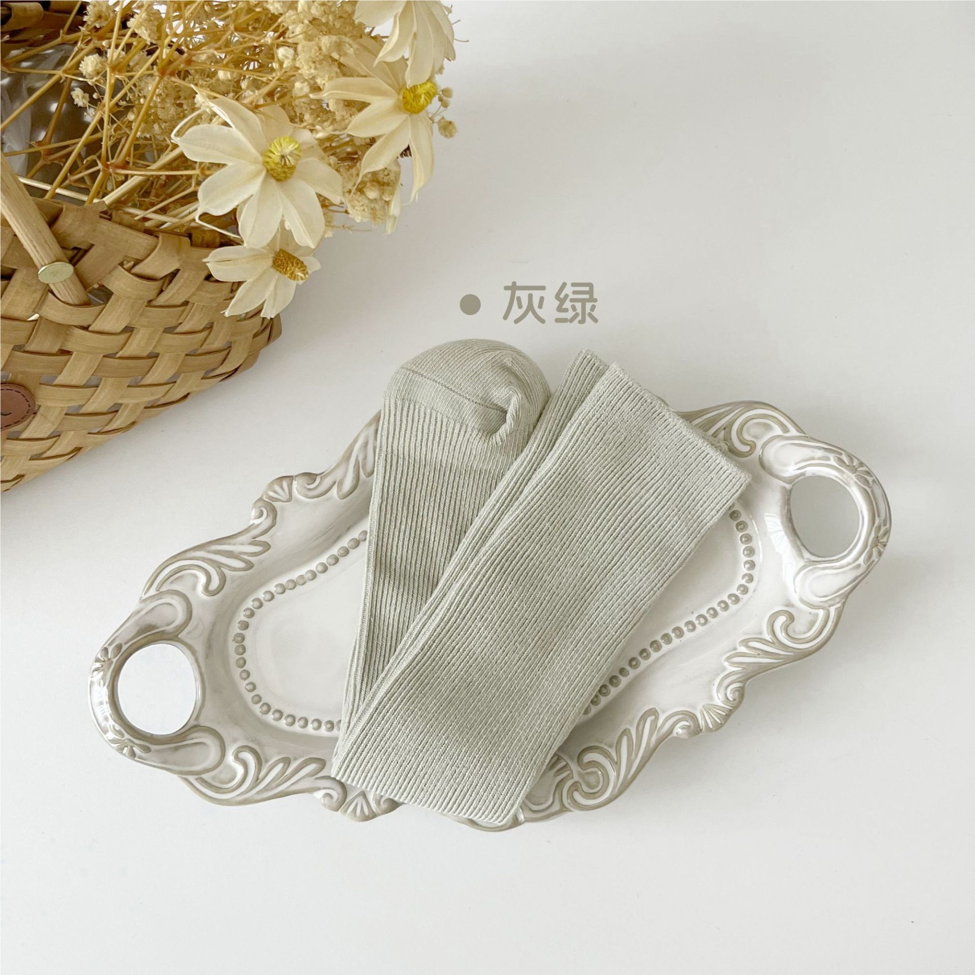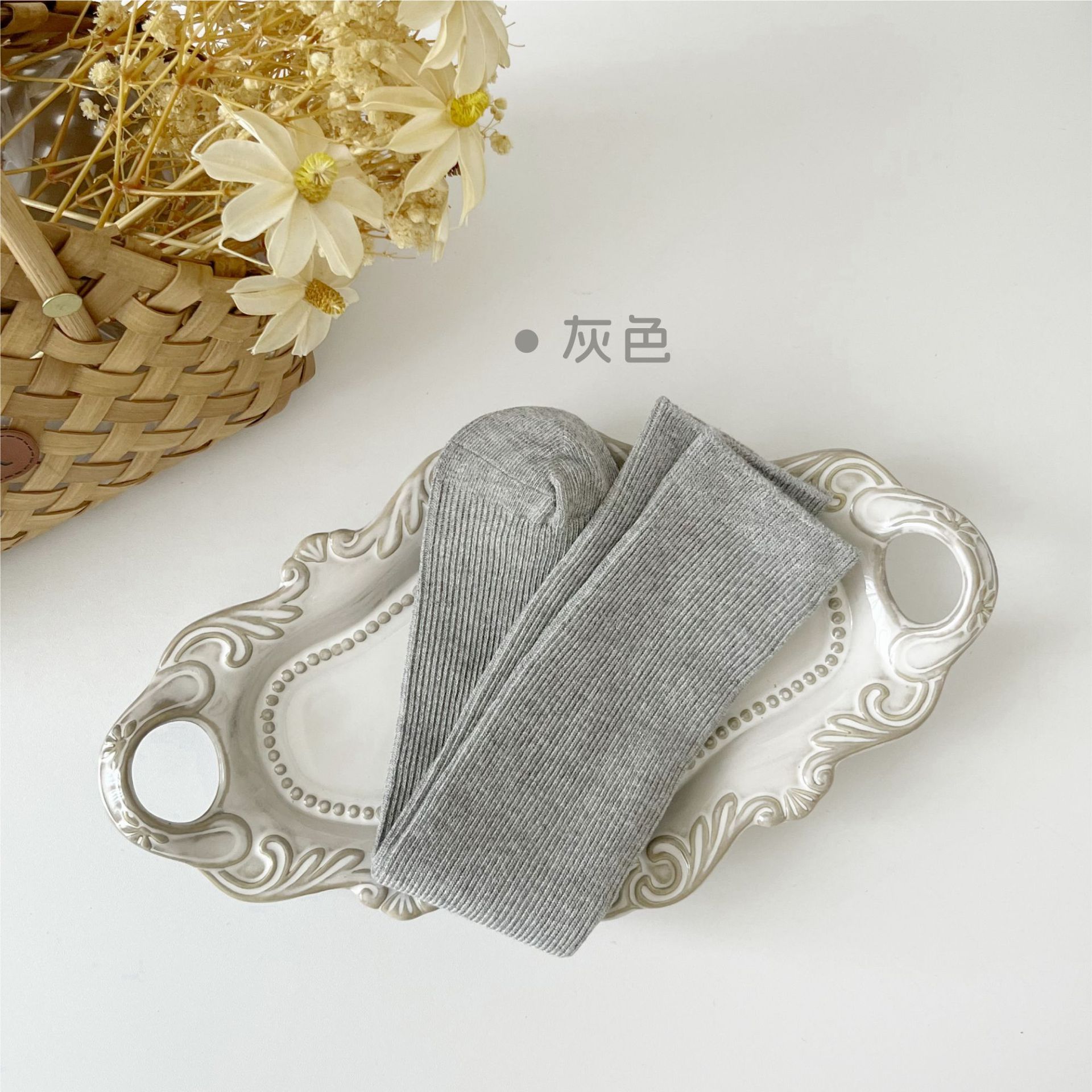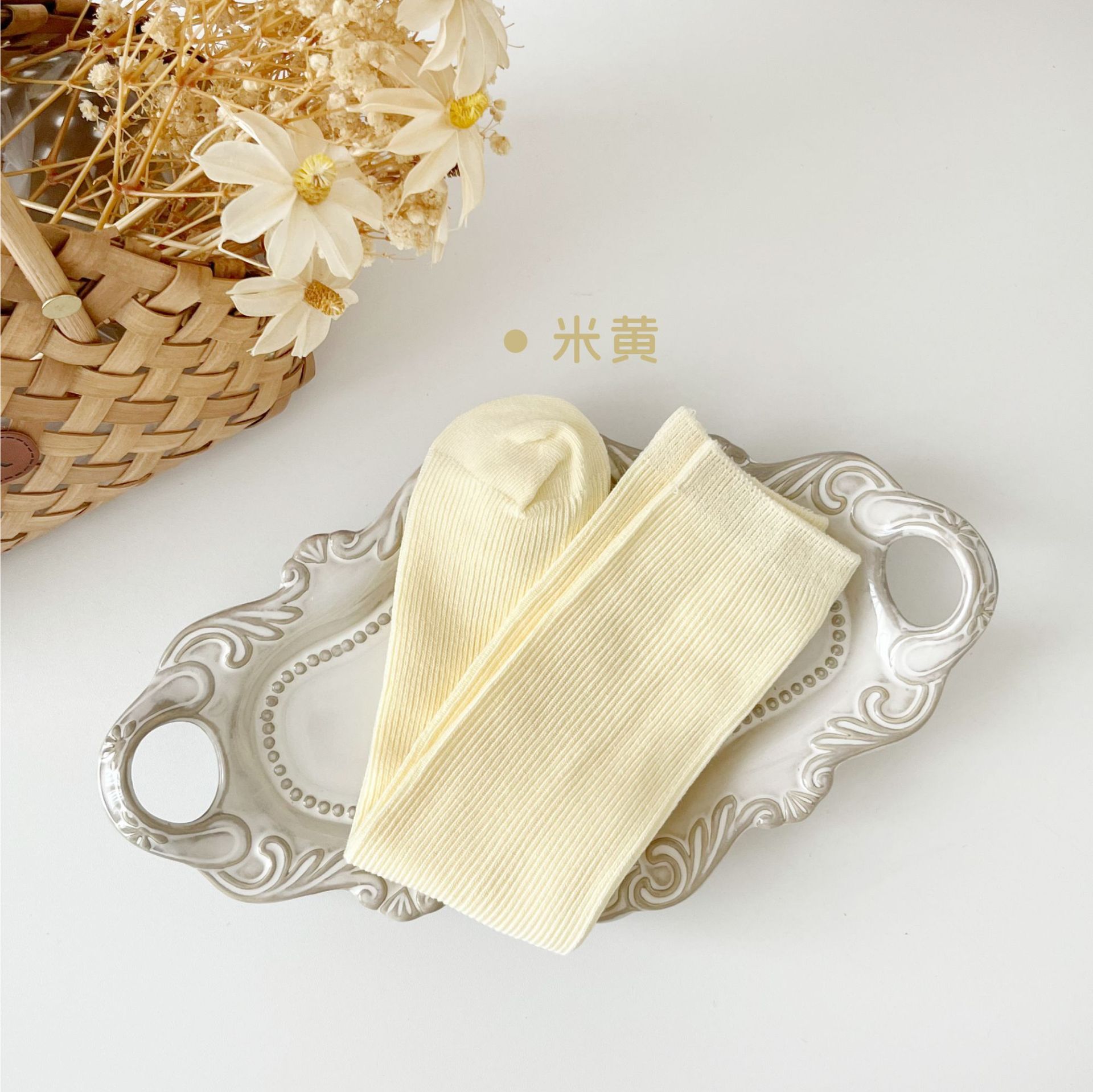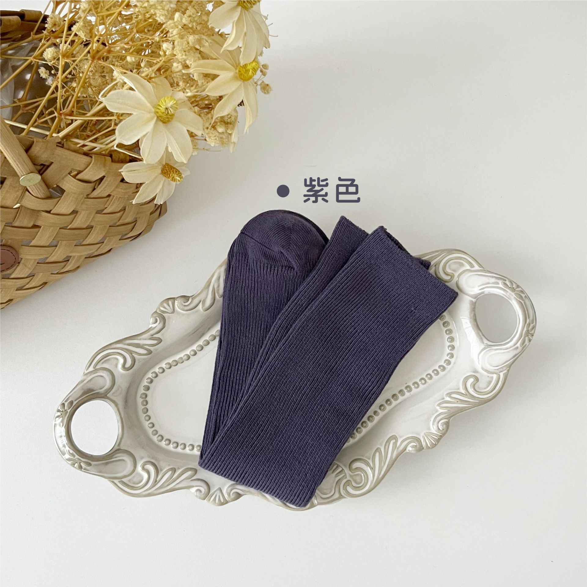 어린이 양말 도매 24 가을 새 스타킹 소년과 소녀와 무릎 양말 단색 더블 바늘 종아리 양말