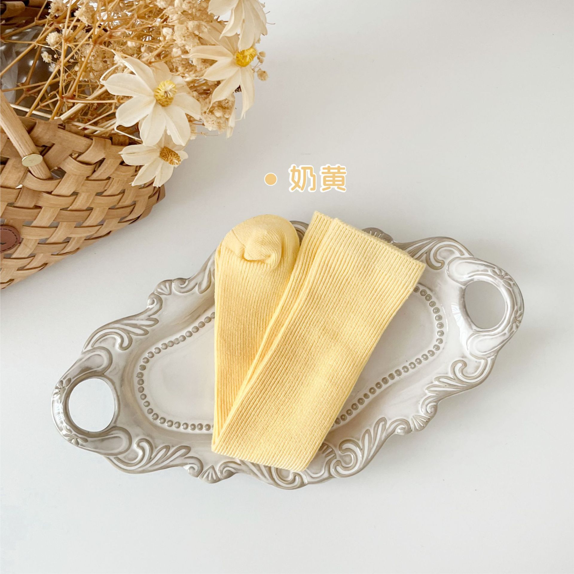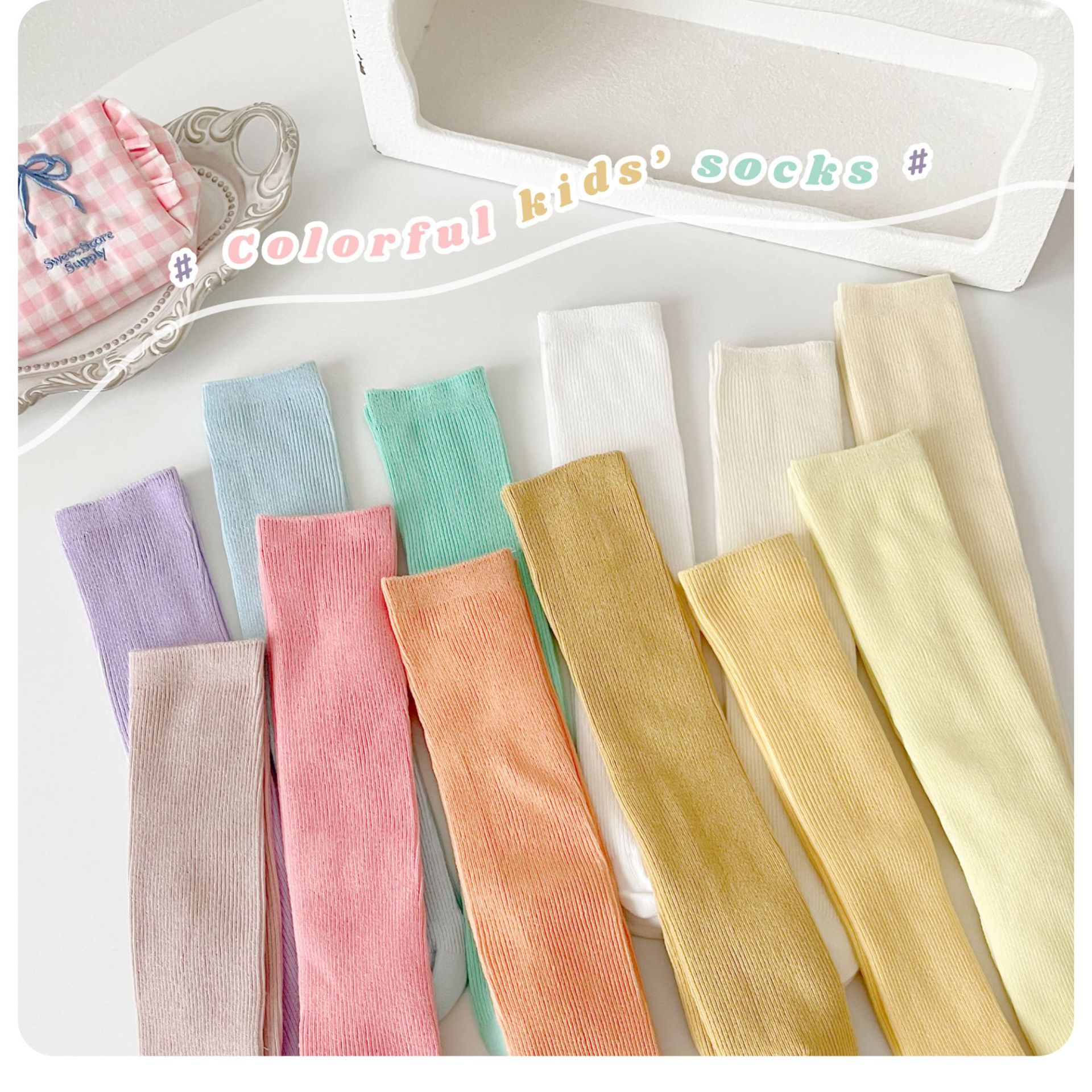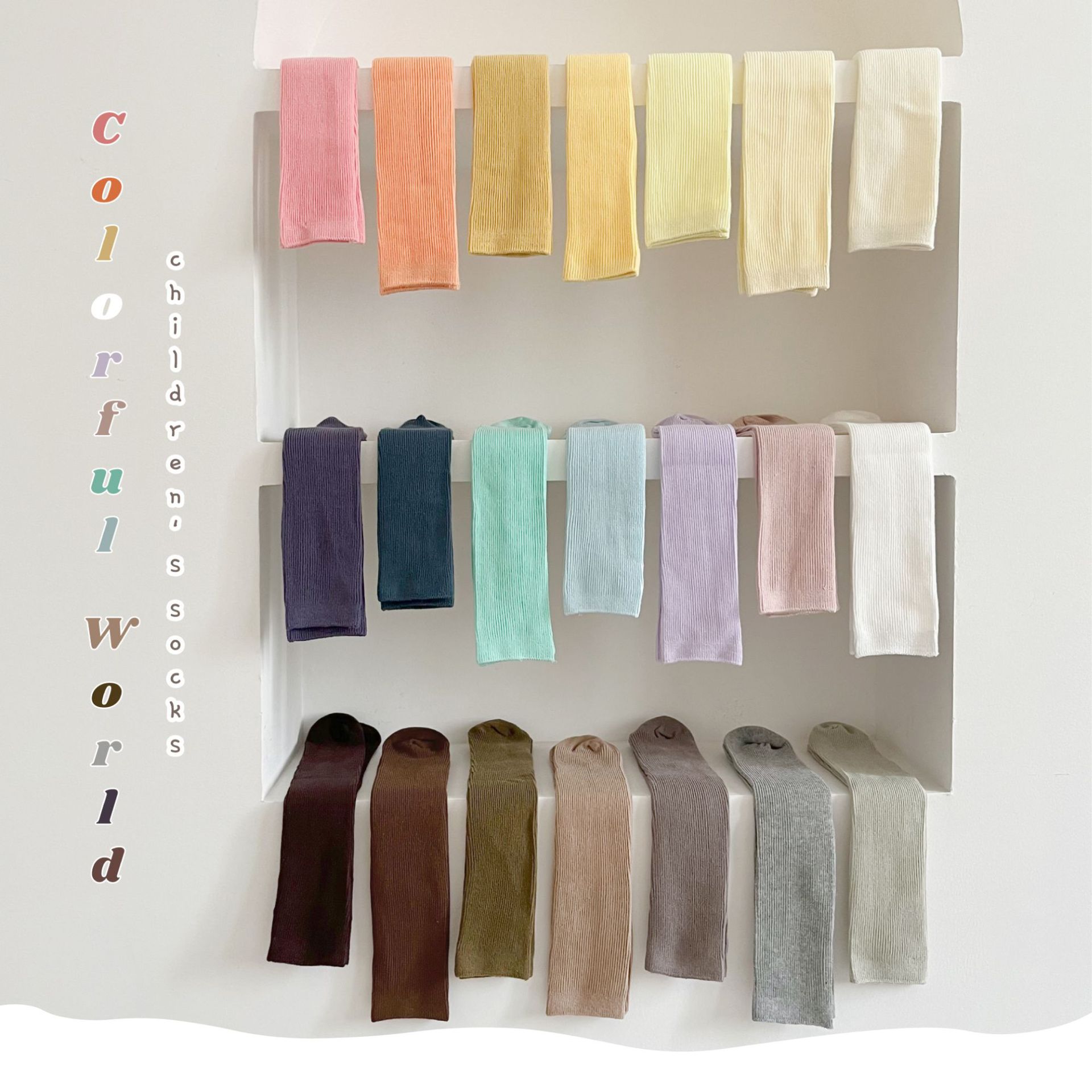 어린이 양말 도매 24 가을 새 스타킹 소년과 소녀와 무릎 양말 단색 더블 바늘 종아리 양말스토어 가기