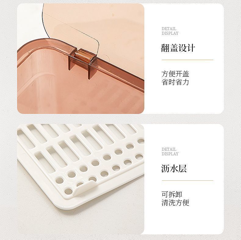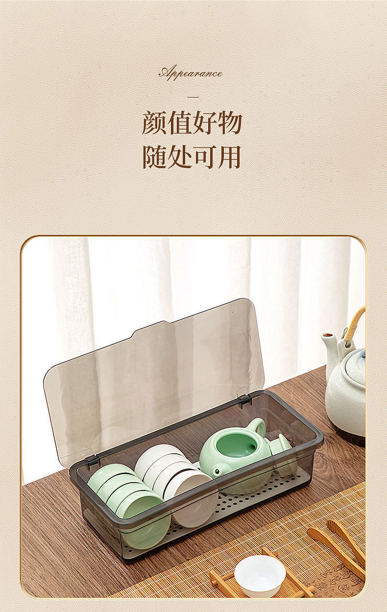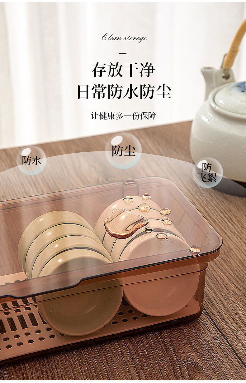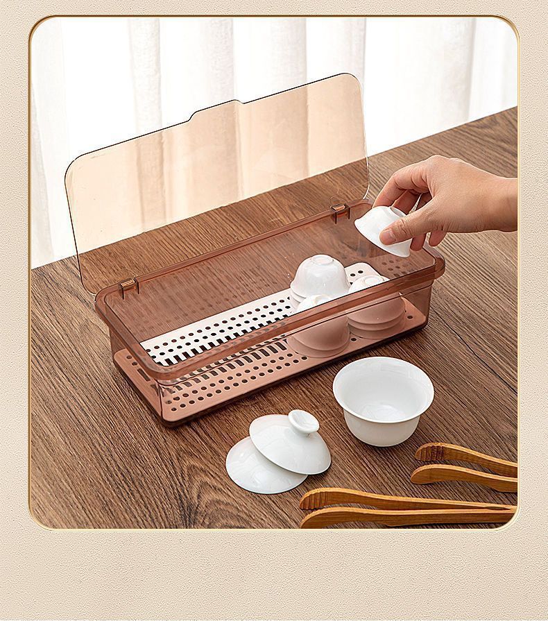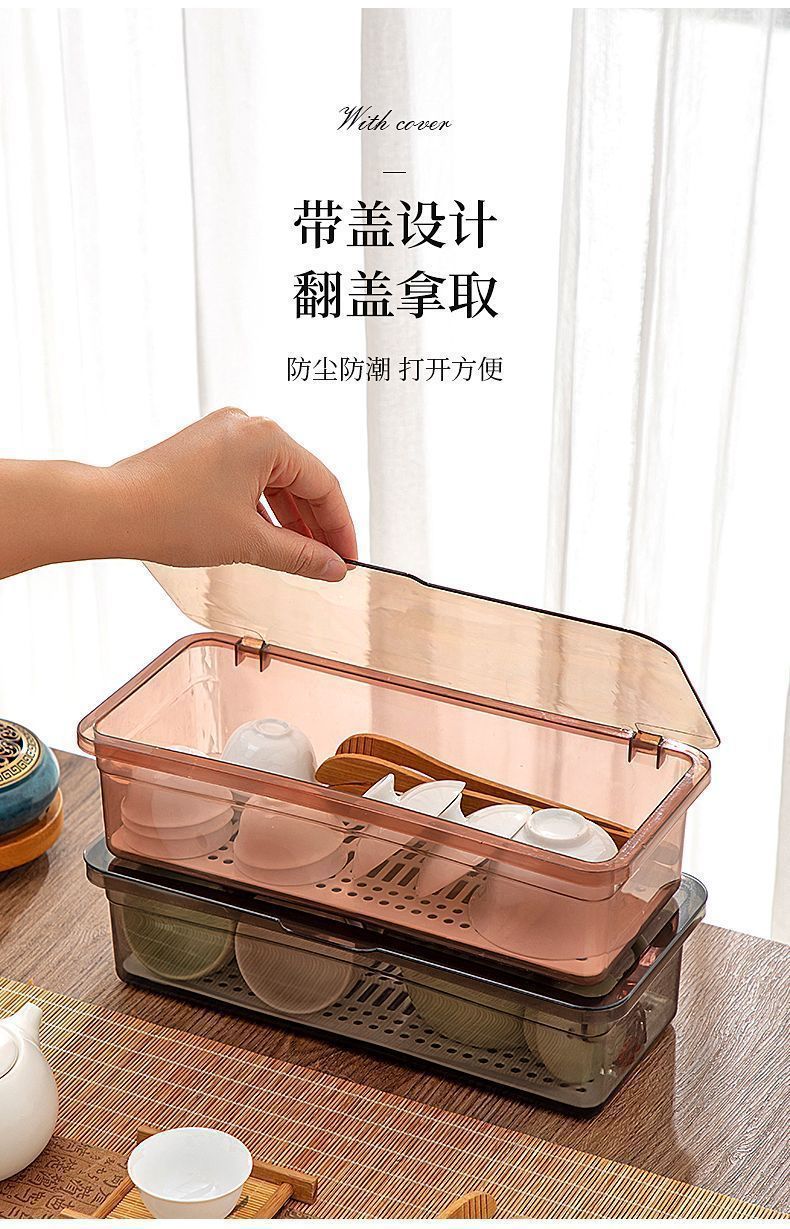 투명 젓가락 상자 차 세트 뚜껑 보관 상자 방진 주방 그릇 젓가락 랙 저장 상자 젓가락 튜브 배수 상자를 가진 식기