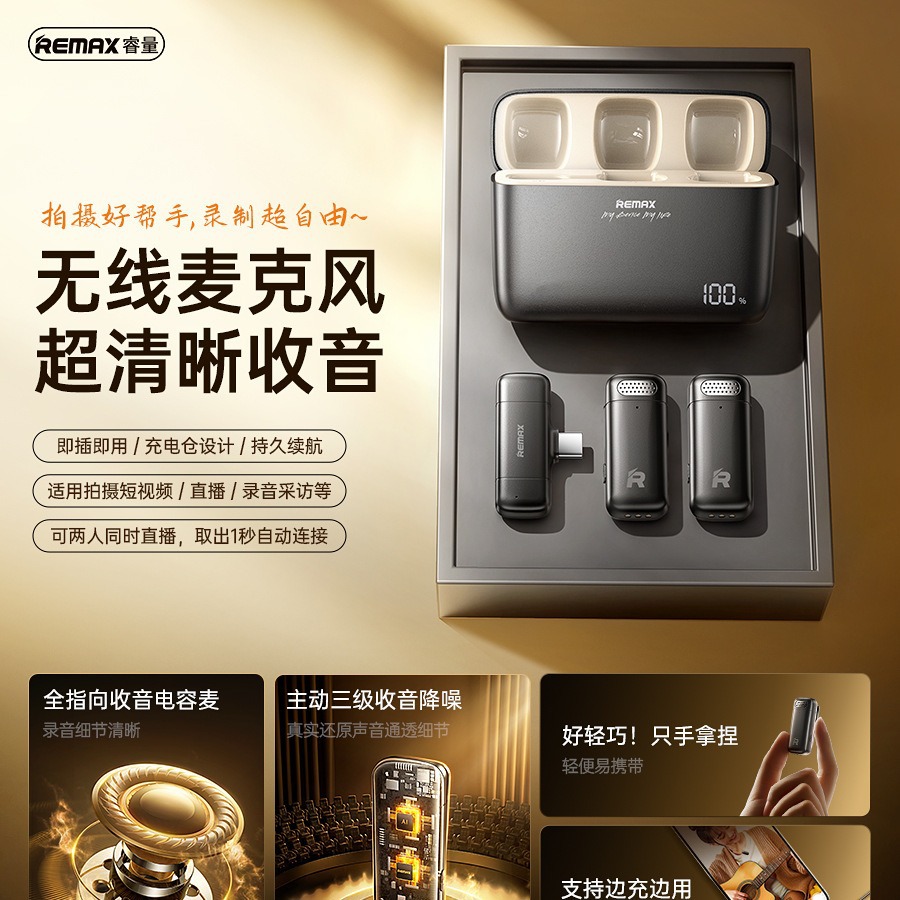 REMAX Rui 측정 한 드래그 두 무선 라이브 라디오 마이크 휴대용 충전 창고 작은 마이크 도매