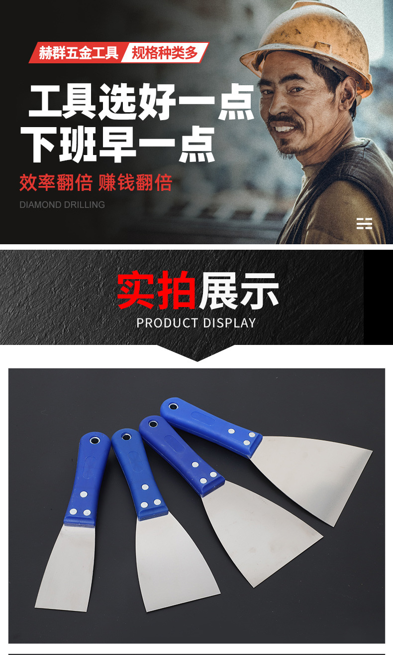 공장 도매 두꺼운 퍼티 삽 청소 삽 벽 퍼티 나이프 나무 손잡이 스테인레스 스틸 퍼티 나이프 스크레이퍼스토어 가기