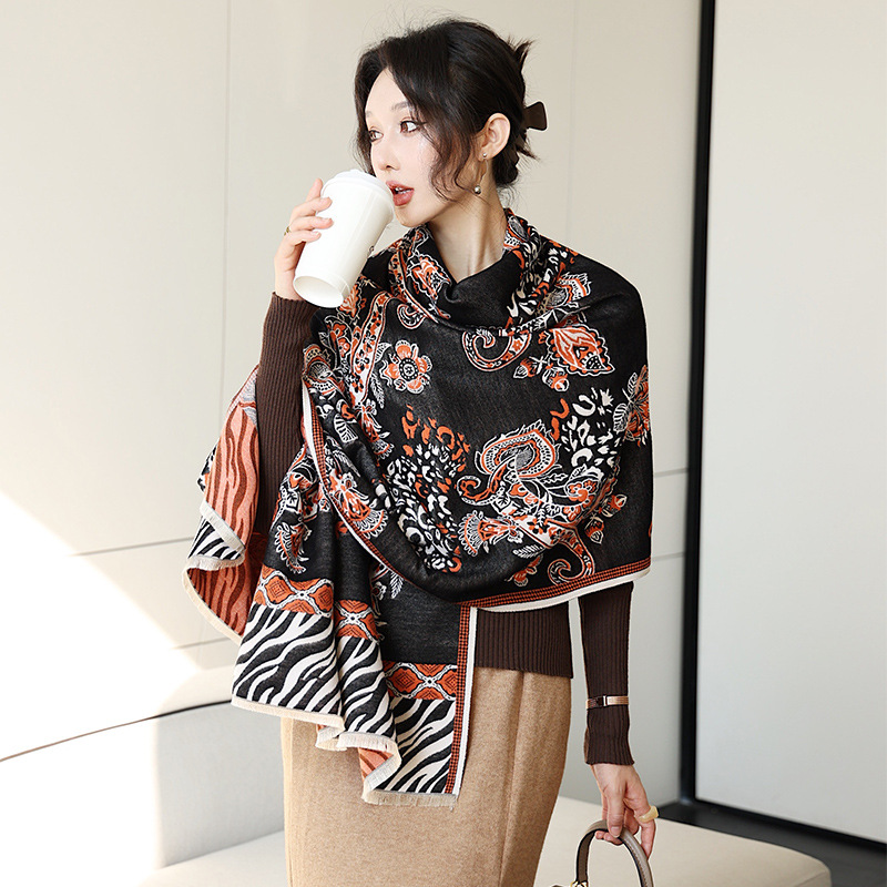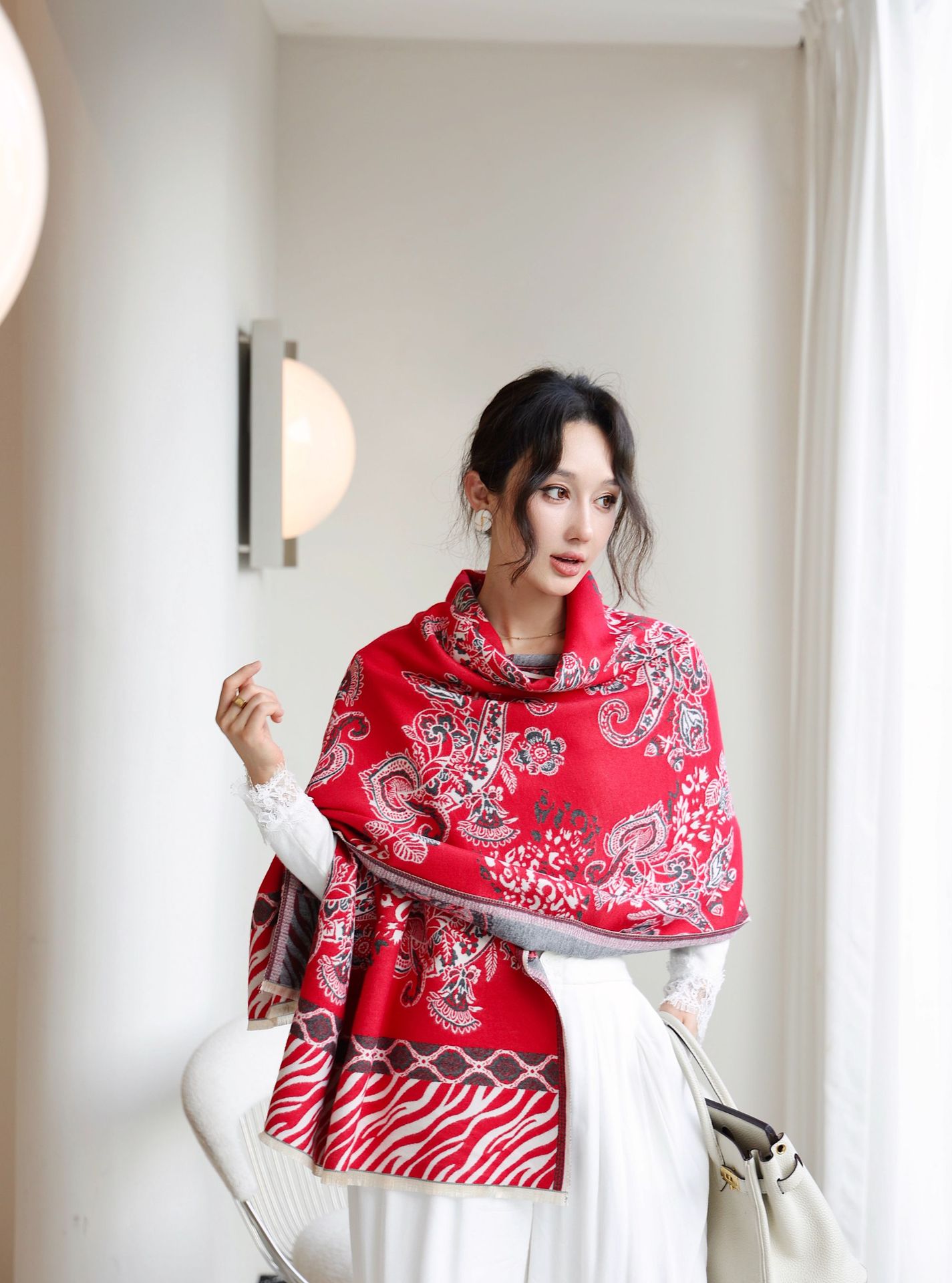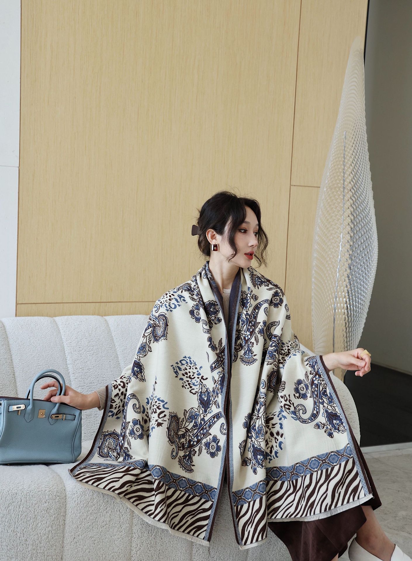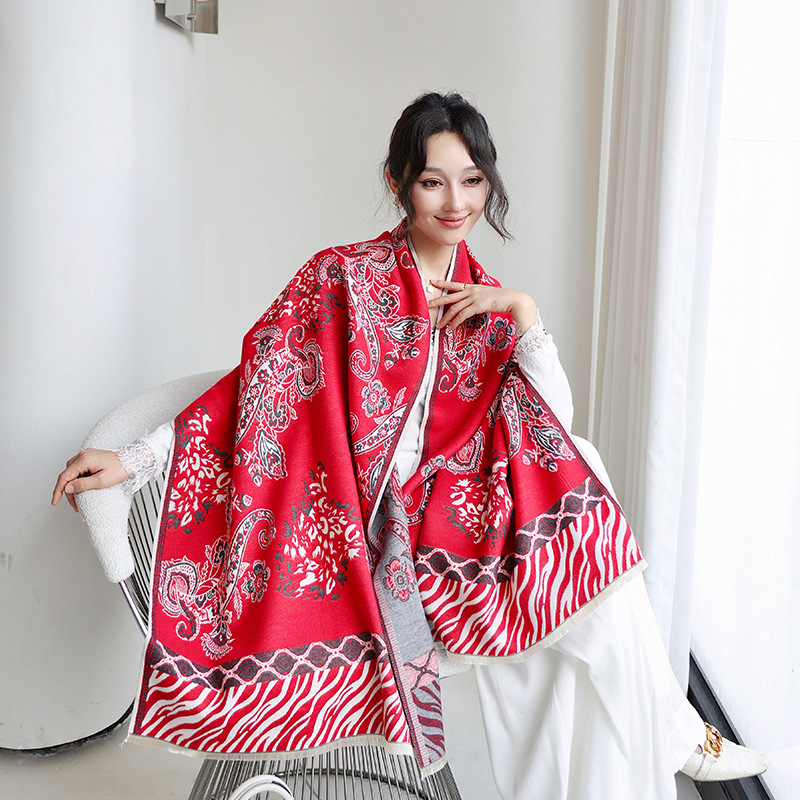 빈티지 로즈 우아한 올 매치 캐시미어 두꺼운 스카프 외부 목도리 고급 국가 스타일 에어컨 담요 판초