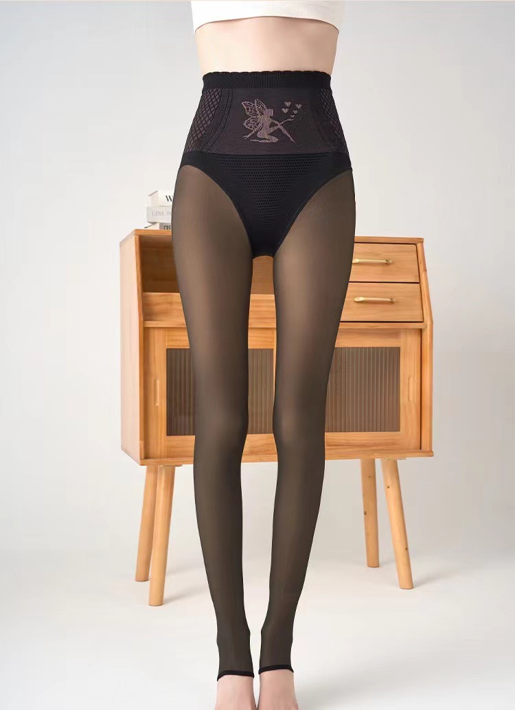 가을과 겨울 새로운 꽃 요정 검은 실크 워터 라이트 높은 허리 배꼽 엉덩이 틴팅 여성용 기모 외면베이스 바지 착용스토어 가기