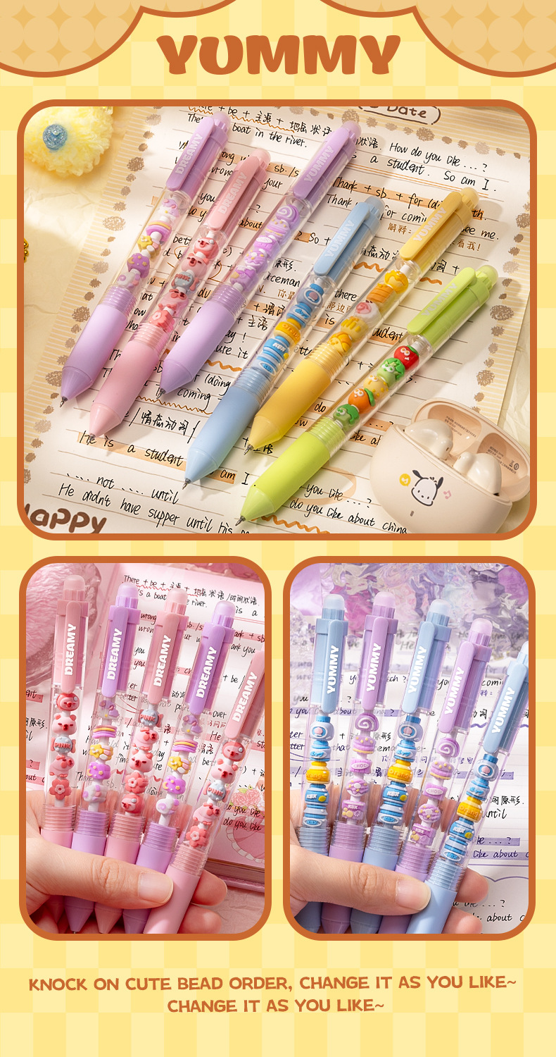 카바 베어 문자열 음악 세트 귀여운 젤 펜 만화 소녀 유행 구슬 놀이 학생 프레스 펜던트 장식