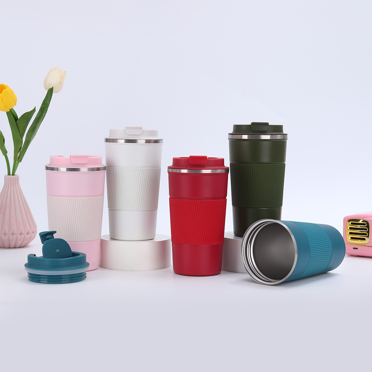 대외 무역 304 스테인레스 스틸 커피 컵 더블 진공 플립 자동차 컵 야외 휴대용 자동차 보온병 컵스토어 가기