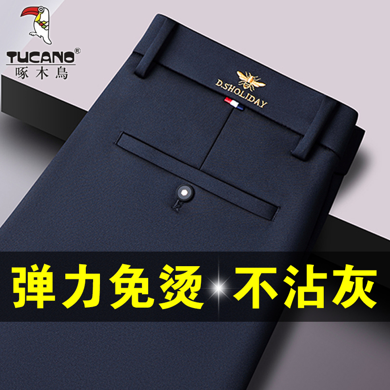 딱따구리 가을 남자 바지 2024 새로운 남성 비즈니스 캐주얼 바지 스트레이트 느슨한 아빠 바지 봄과 가을 바지