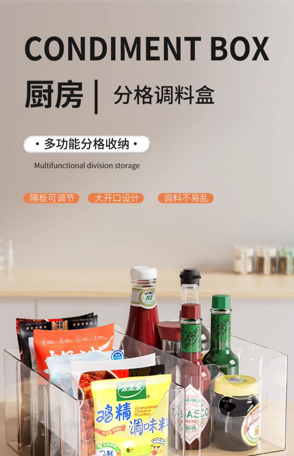 조미료 보관 상자 가정용 주방 고급 향신료 다중 구획 통합 분할 조미료 항아리 저장 랙 스토리지 랙