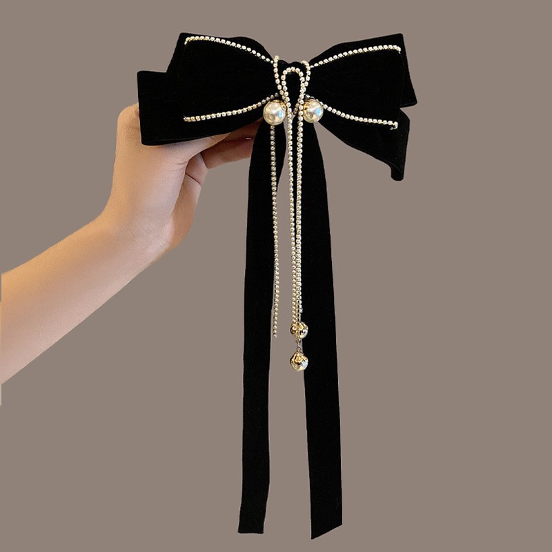 고급 빅 보우 헤드웨어 헤어핀 여성의 우아한 머리 머리 뒷면 올 매치 헤어 액세서리 플래시 다이아몬드 술 봄 클립