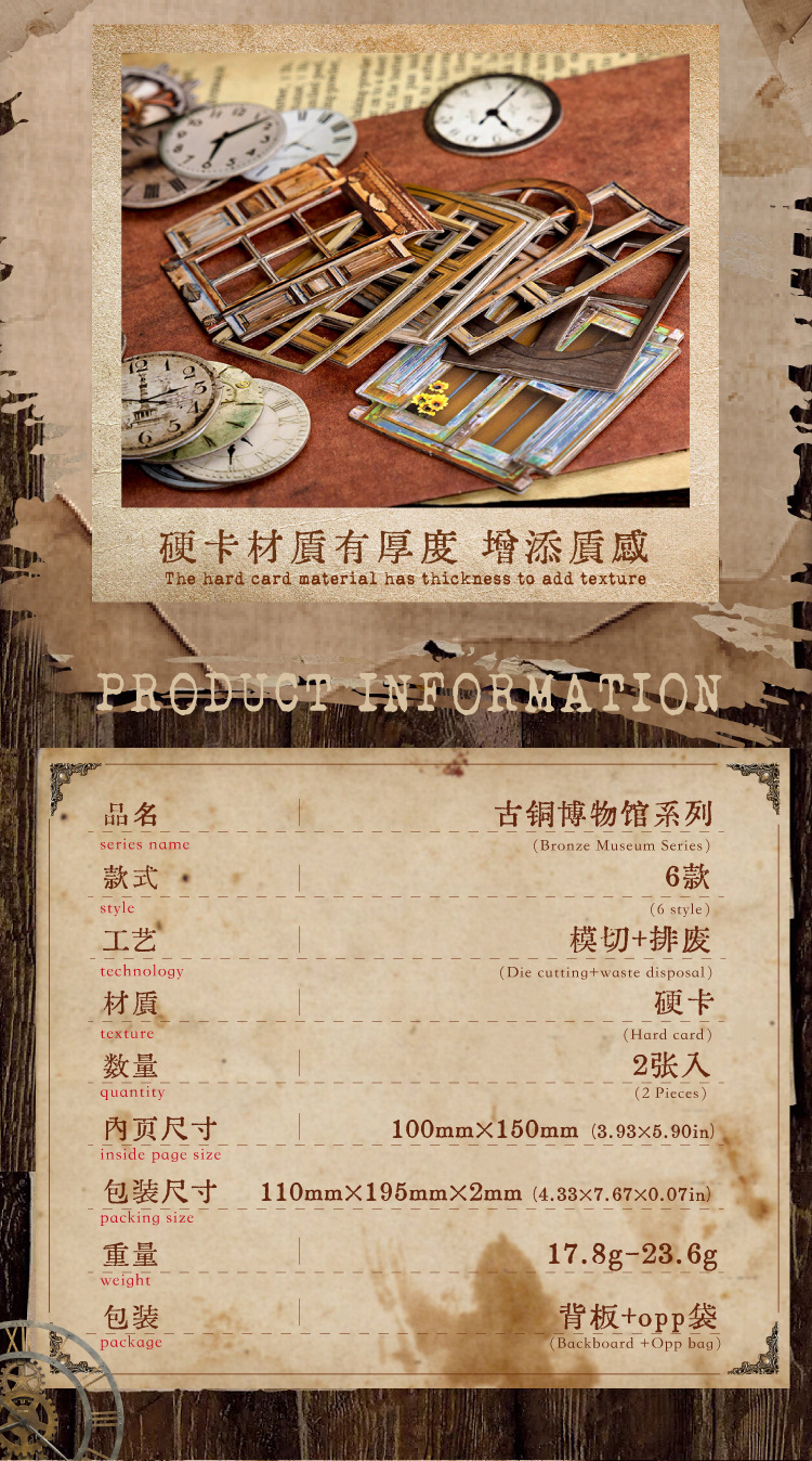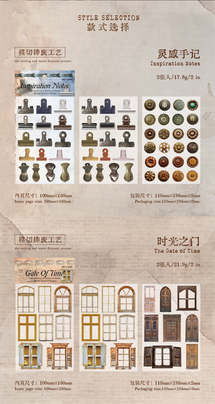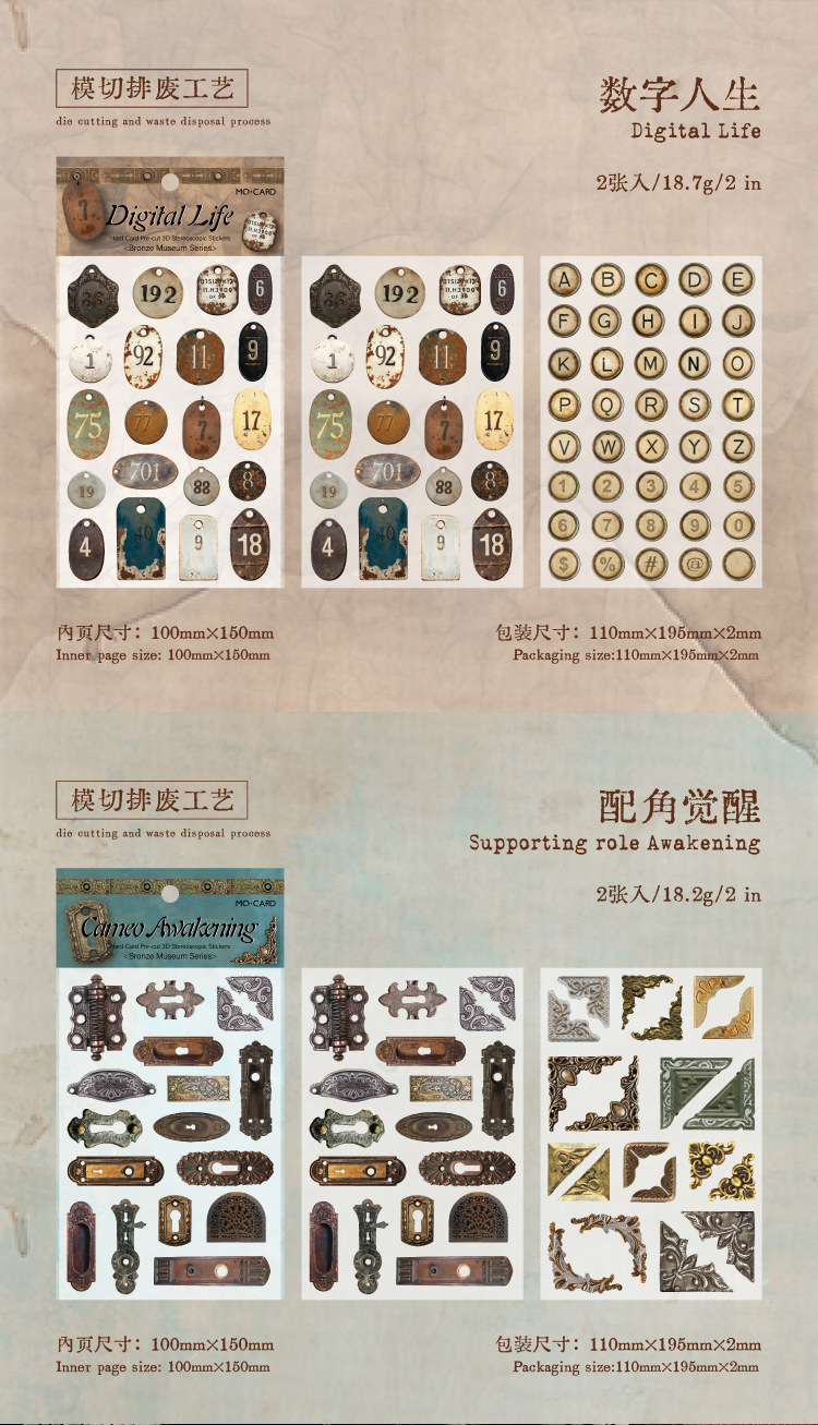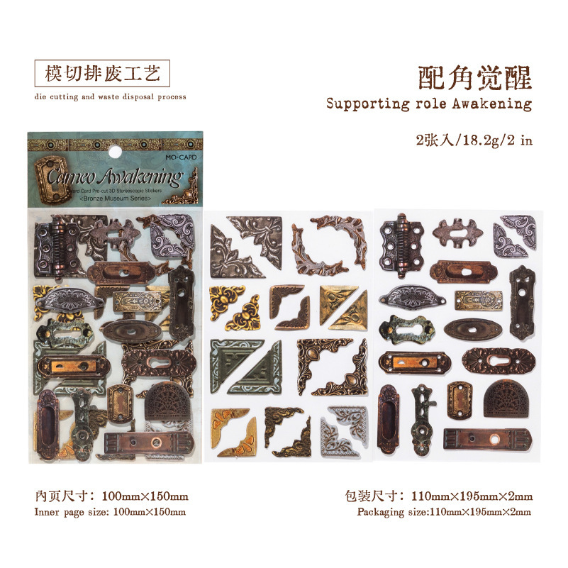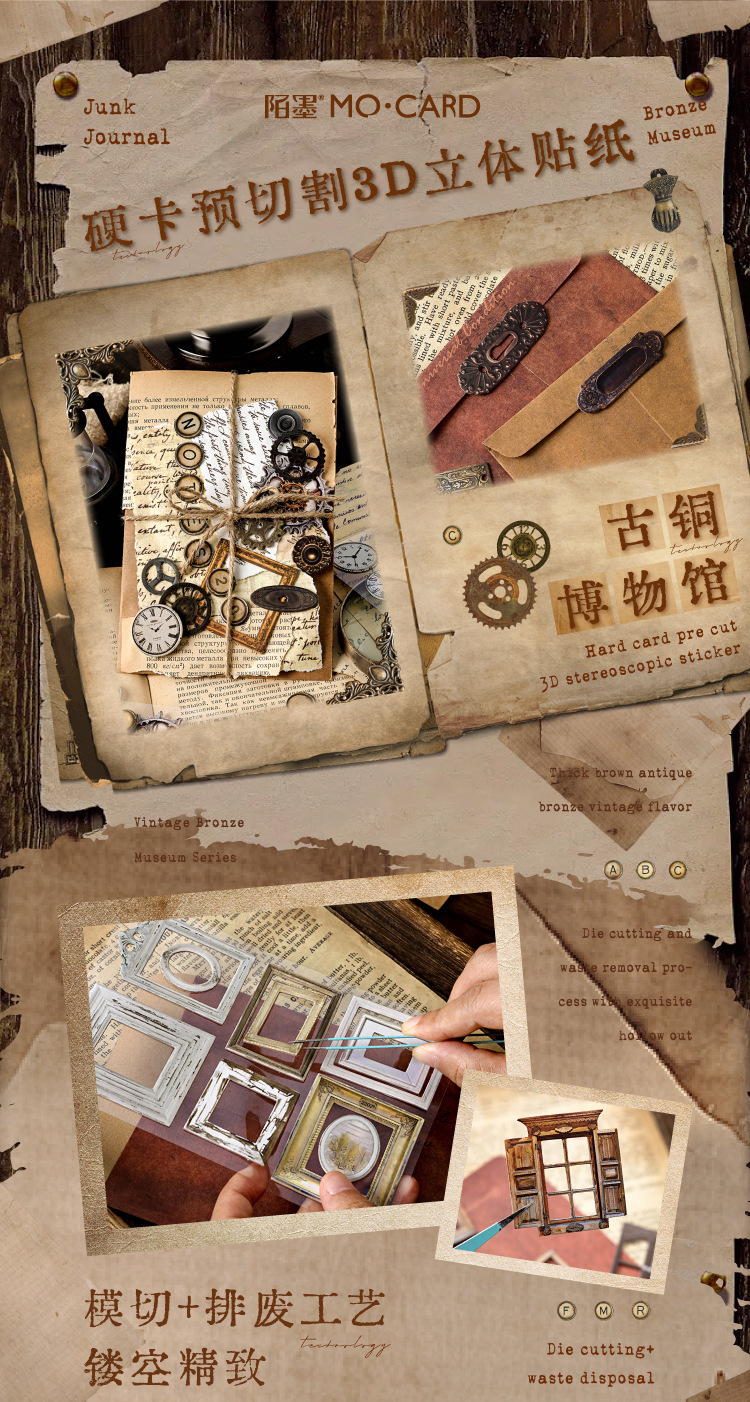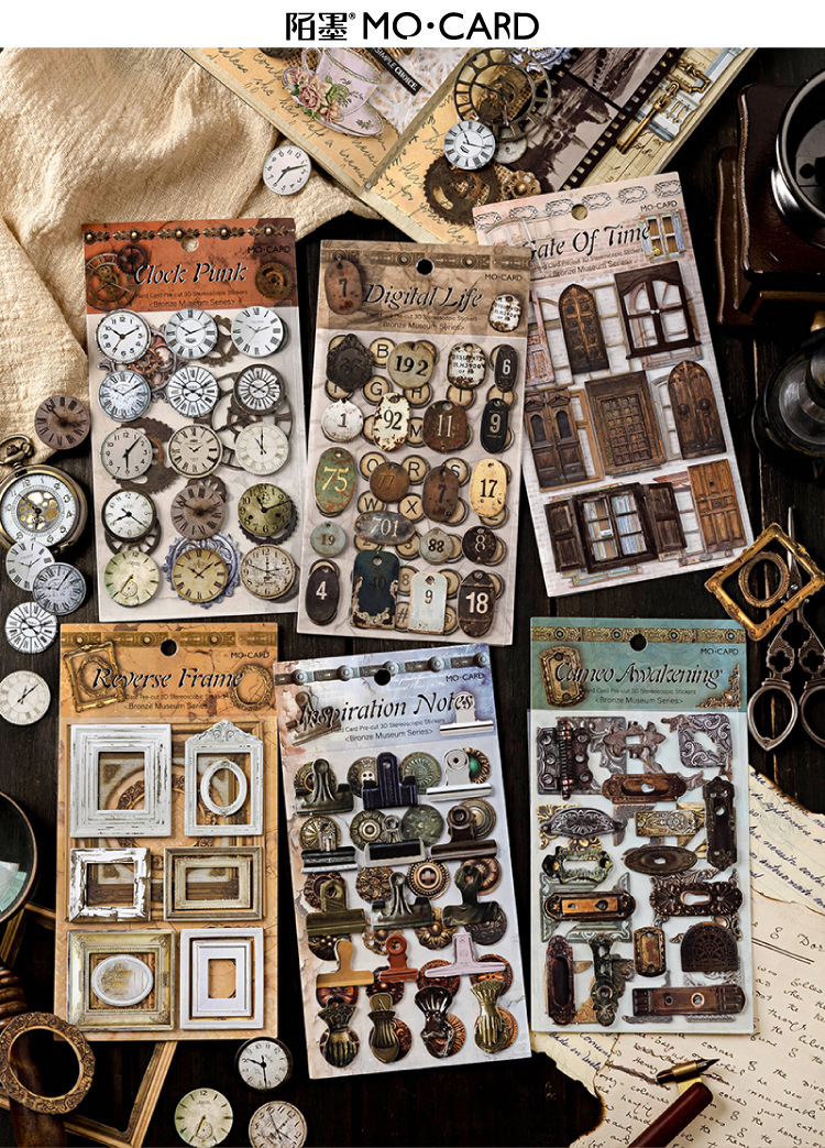 모 모 하드 카드 3D 스테레오 스티커 청동 박물관 시리즈 복고풍 기어 소재 손 계정 통증 가방 Diy 콜라주스토어 가기