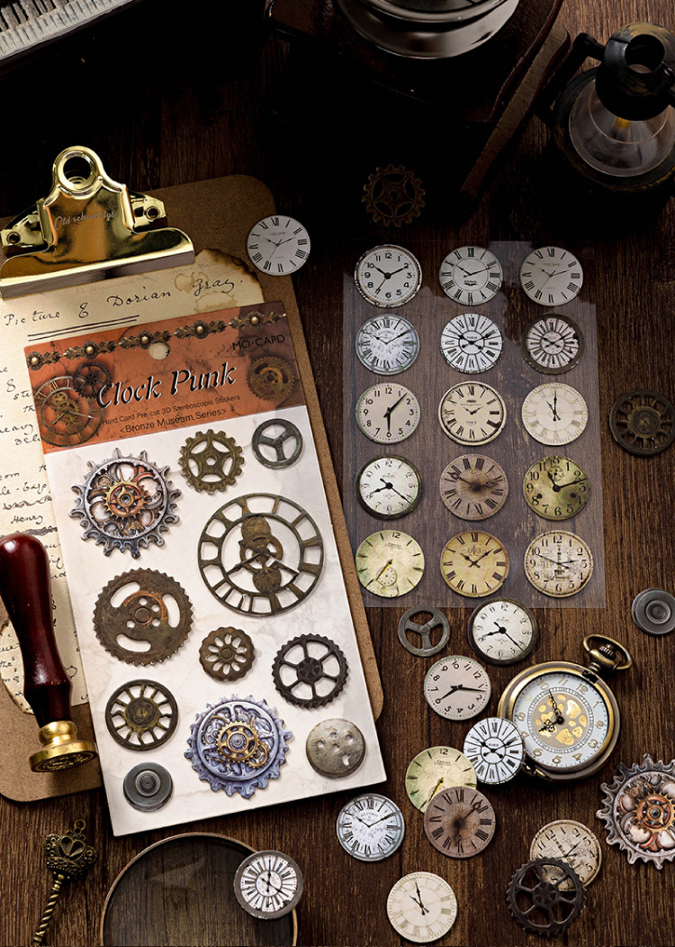 모 모 하드 카드 3D 스테레오 스티커 청동 박물관 시리즈 복고풍 기어 소재 손 계정 통증 가방 Diy 콜라주