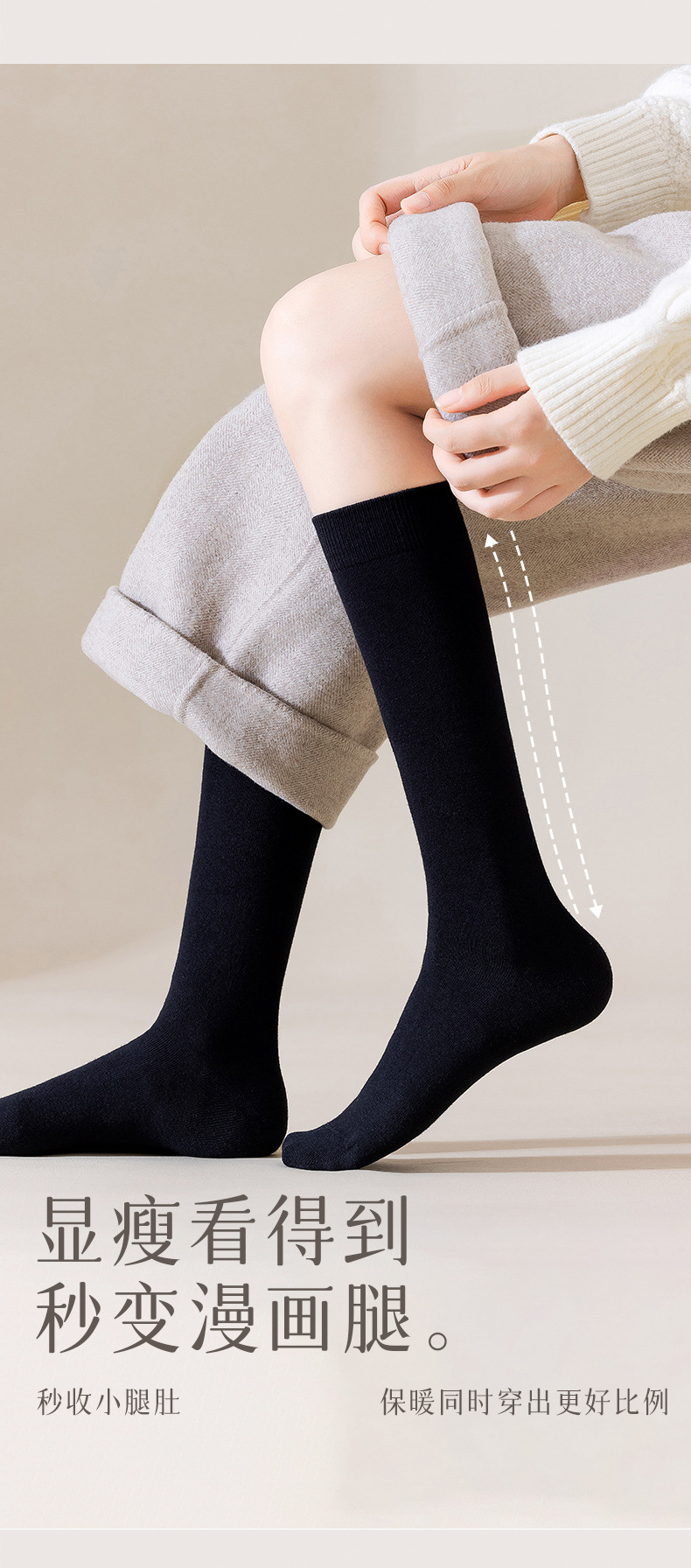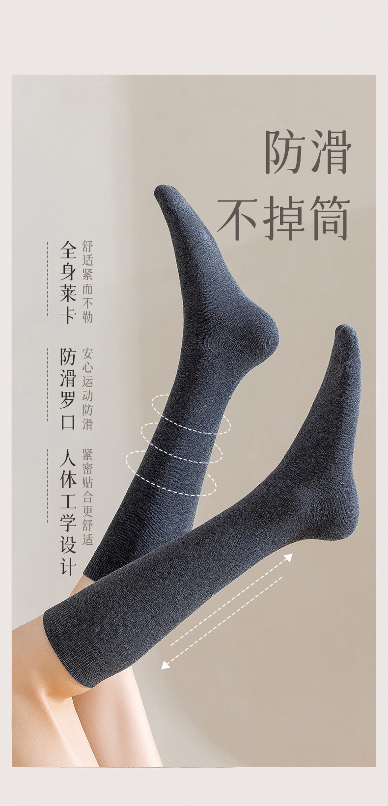 여성용 순면 항균 미끄럼 방지 양말, 여성용 보온 블랙 JK 만능 롱삭스, 가을용 하이삭스스토어 가기