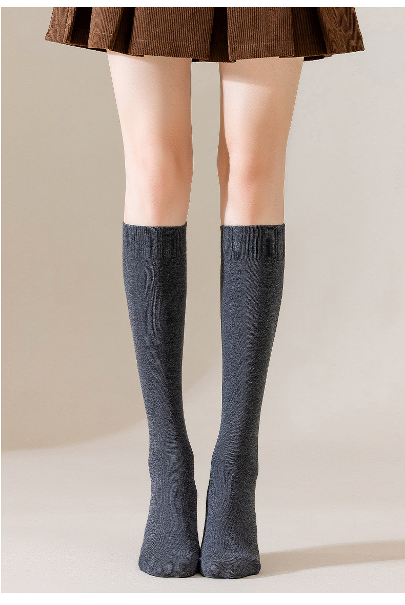 여성용 순면 항균 미끄럼 방지 양말, 여성용 보온 블랙 JK 만능 롱삭스, 가을용 하이삭스