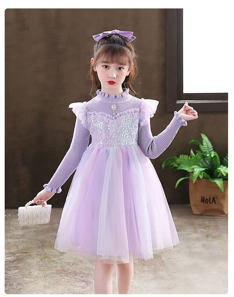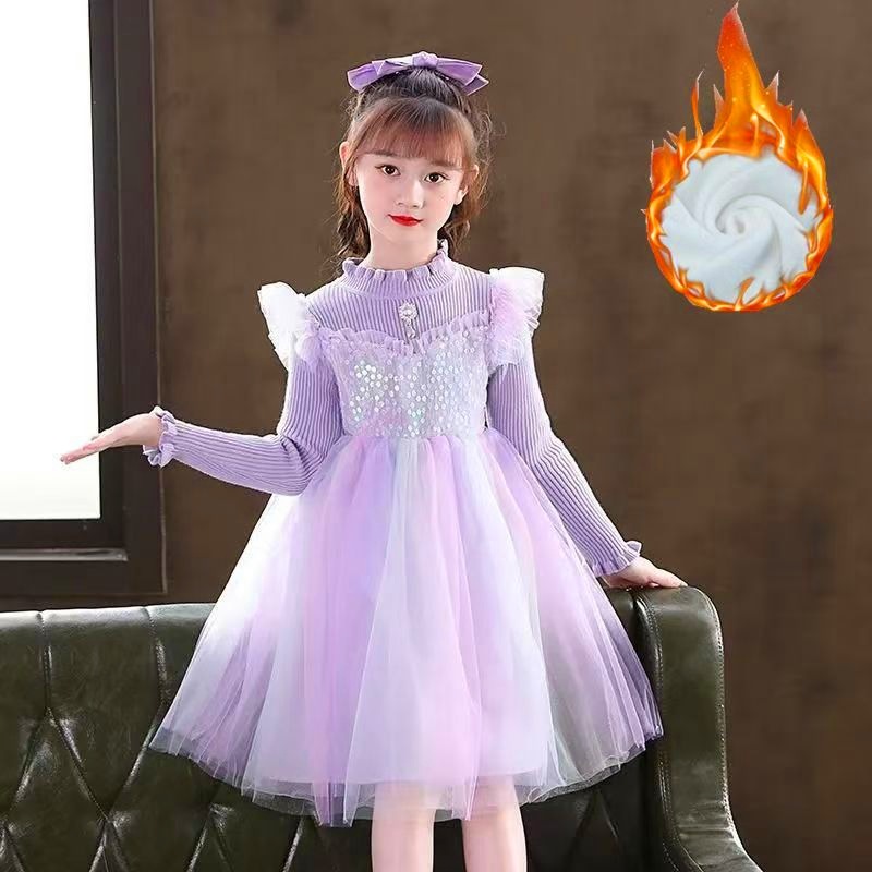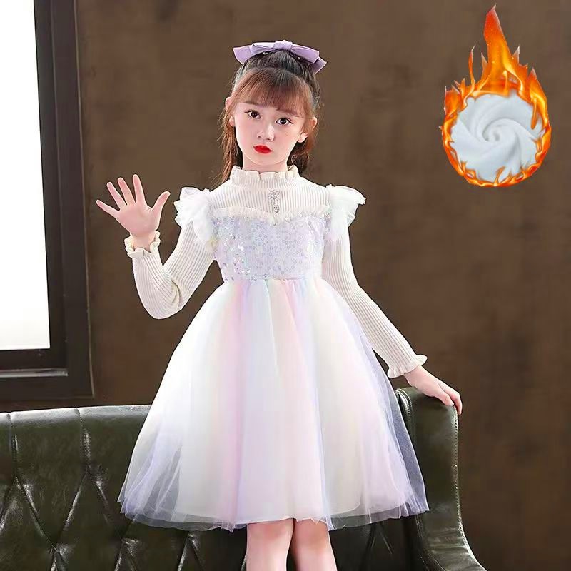 여아 드레스 2025 신상 가을 겨울 스커트 플리스 안감 긴팔 어린이 공주풍 드레스 퍼프 소매스토어 가기