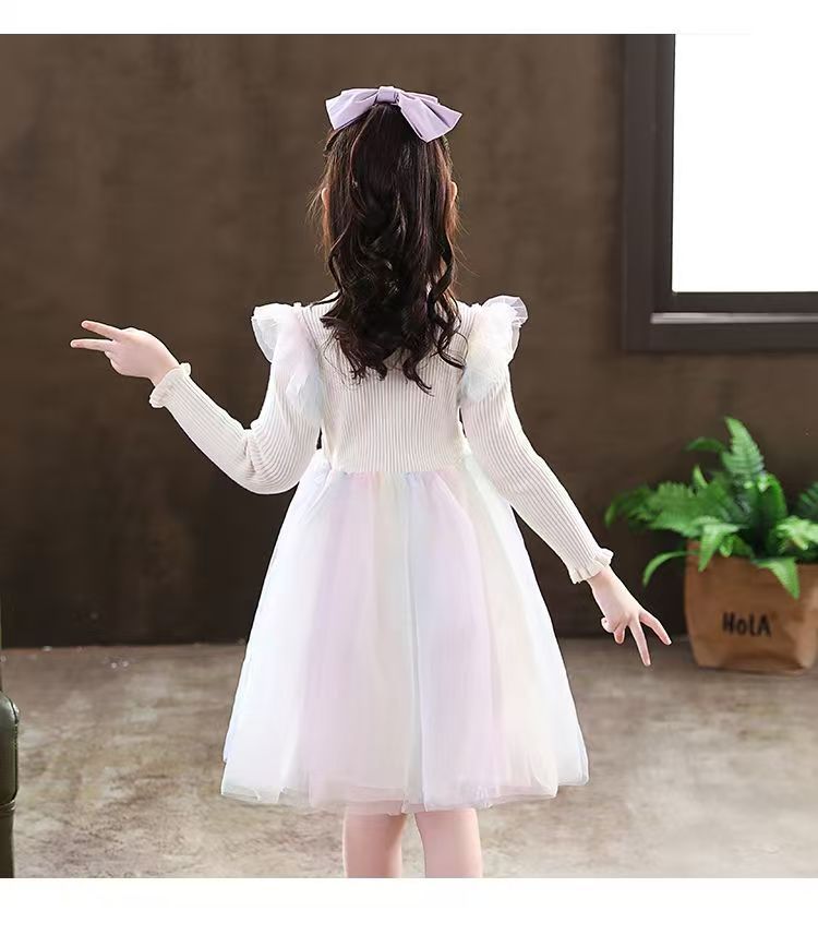 여아 드레스 2025 신상 가을 겨울 스커트 플리스 안감 긴팔 어린이 공주풍 드레스 퍼프 소매