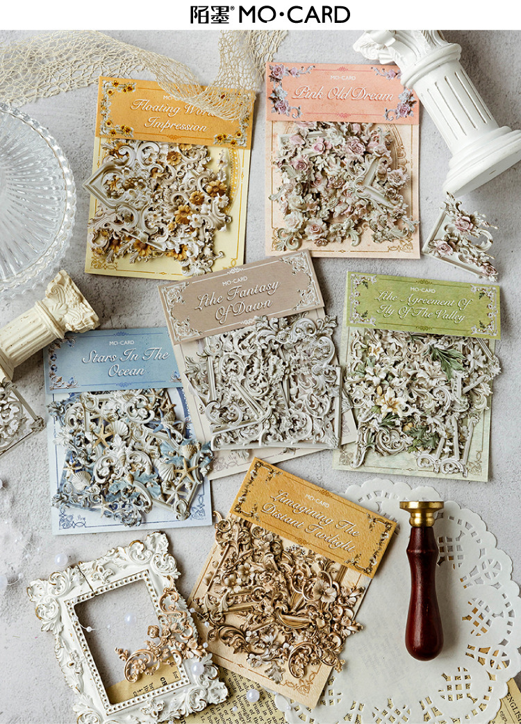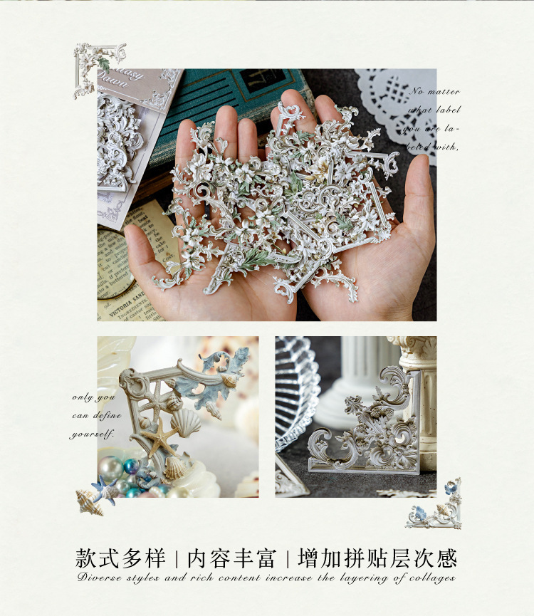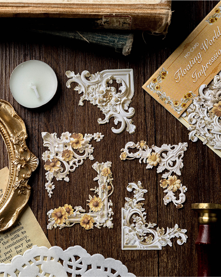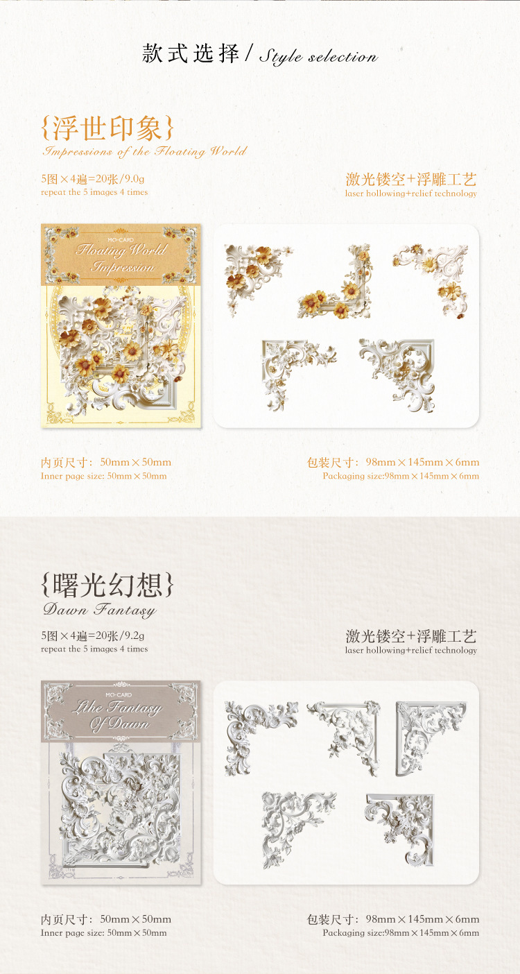 모 잉크 중공 릴리프 사이드 코너 스티커 클래식 년 시리즈 복고풍 유럽 스타일 소재 손 계정 Gu Mei 장식 콜라주