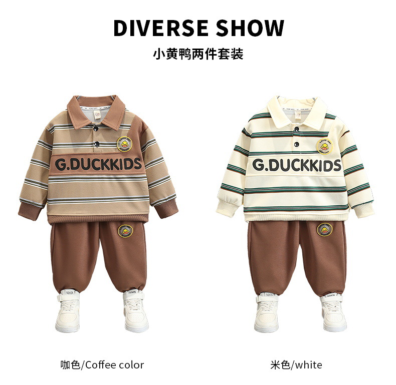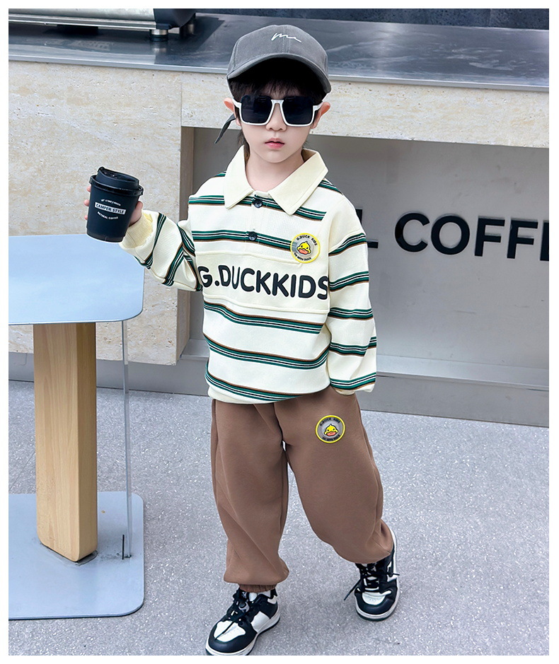 작은 노란색 오리 아동복 소년 가을 세트 2024 새로운 외국 스타일 어린이 폴로 셔츠 소년 아기 봄과 가을 옷스토어 가기