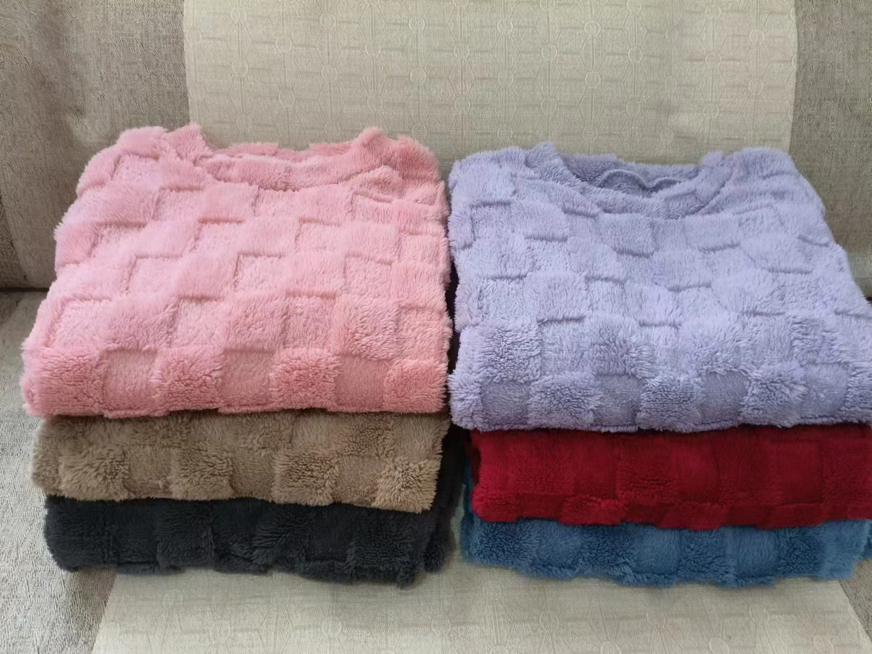 리얼 샷 가을과 겨울 스퀘어 코튼 벨벳 파자마 세트 홈 의류 여성 기모 두꺼운 코랄 벨벳 따뜻한 투피스 세트