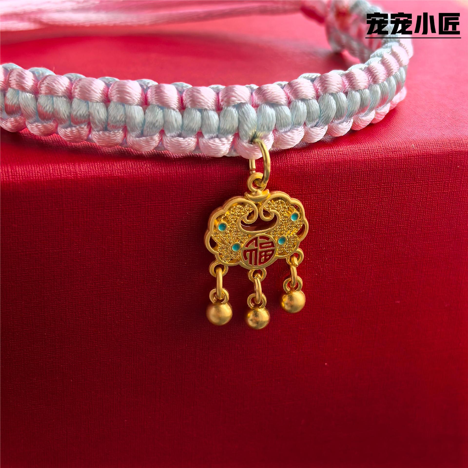 고양이 목걸이 긴 생활 행운의 자물쇠 행운의 수제 니트 개 목걸이 빨간 밧줄 보석 애완 동물 목걸이