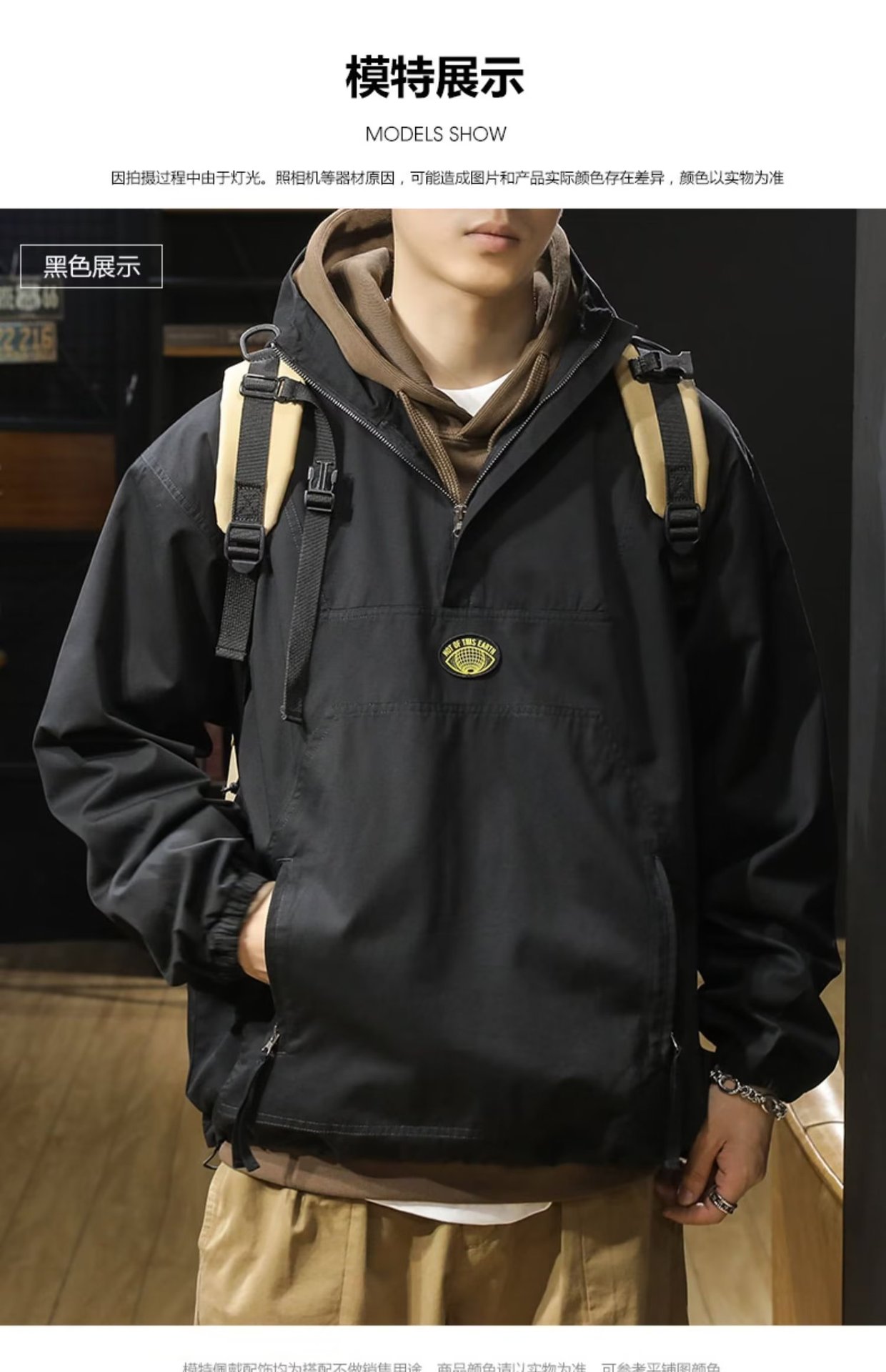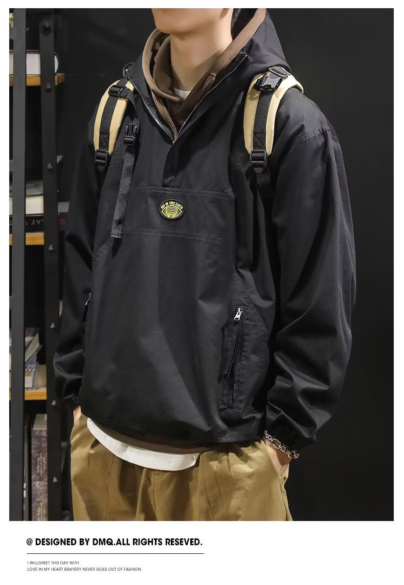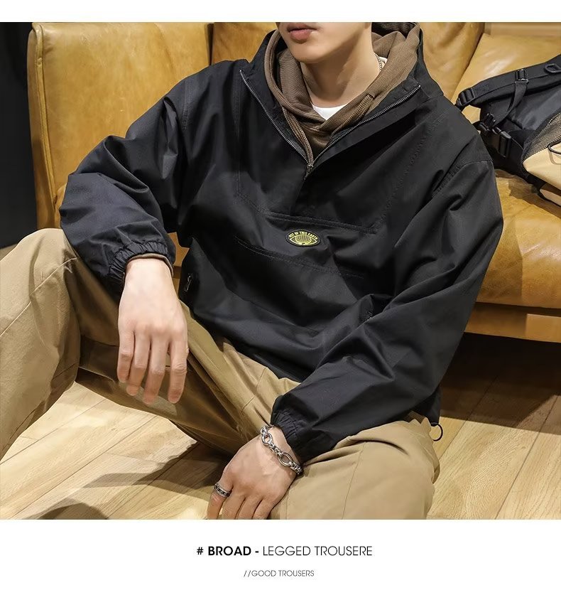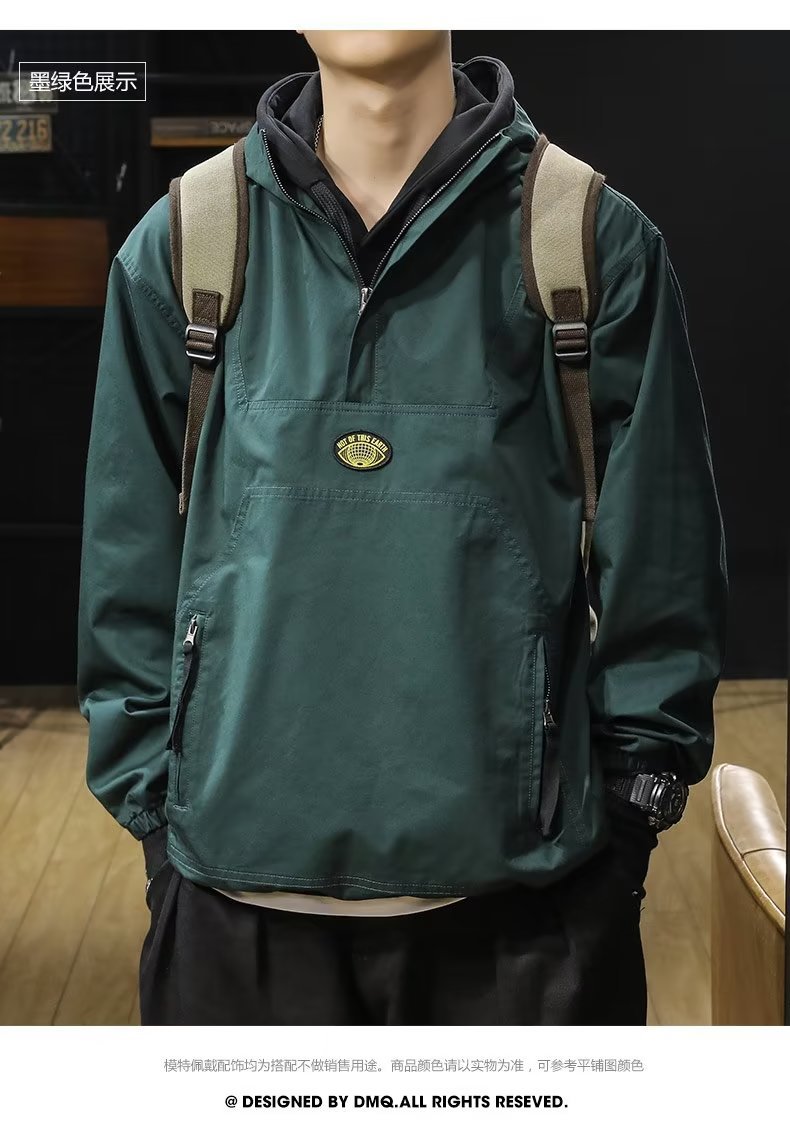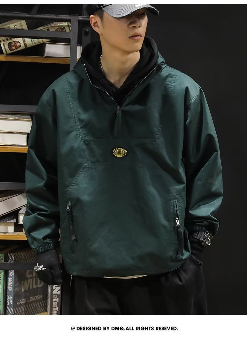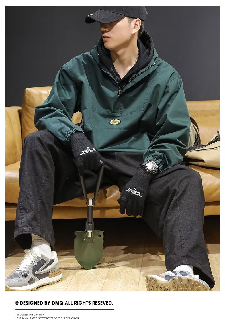 미국 스타일의 트렌디 한 브랜드 후드 자켓 남성용 루즈 트렌디 마운틴 야외 방풍 하프 Zip 풀오버 재킷