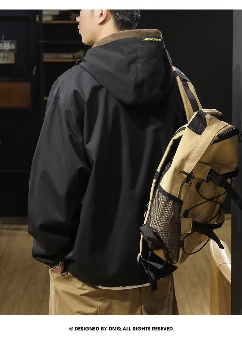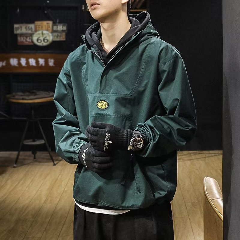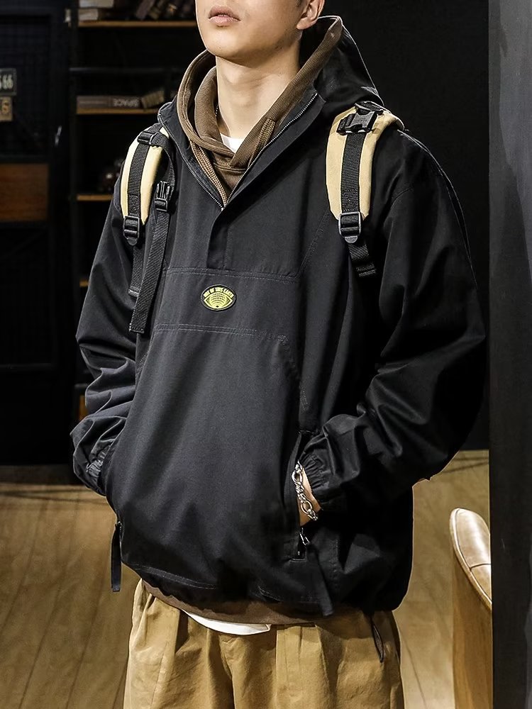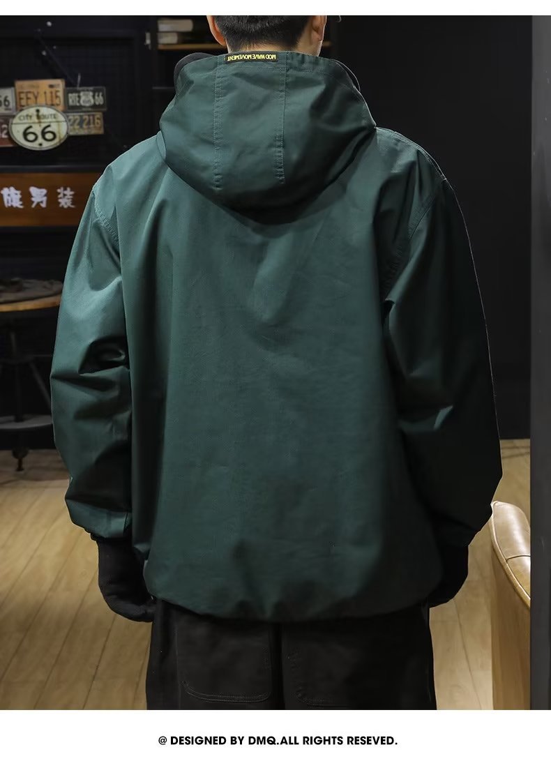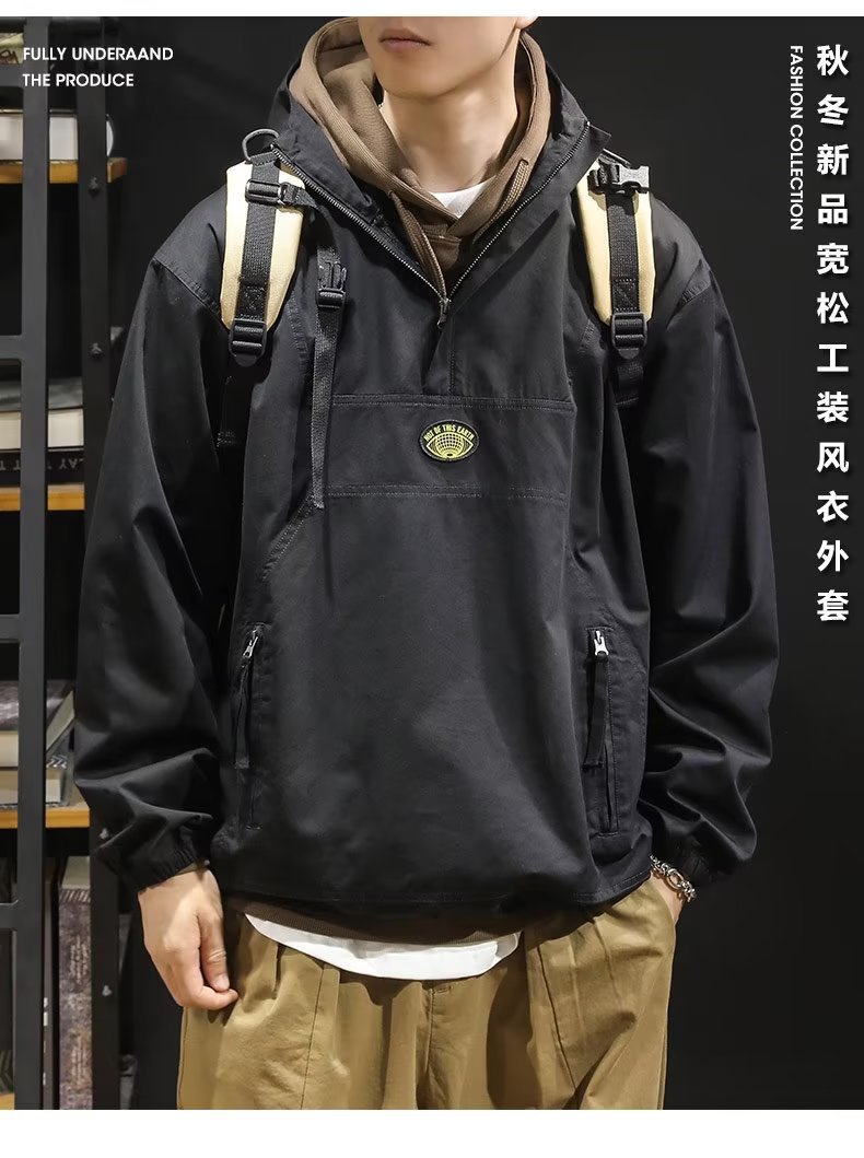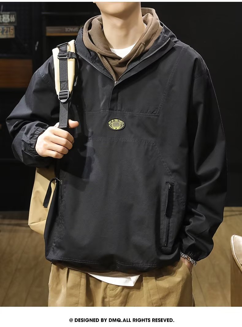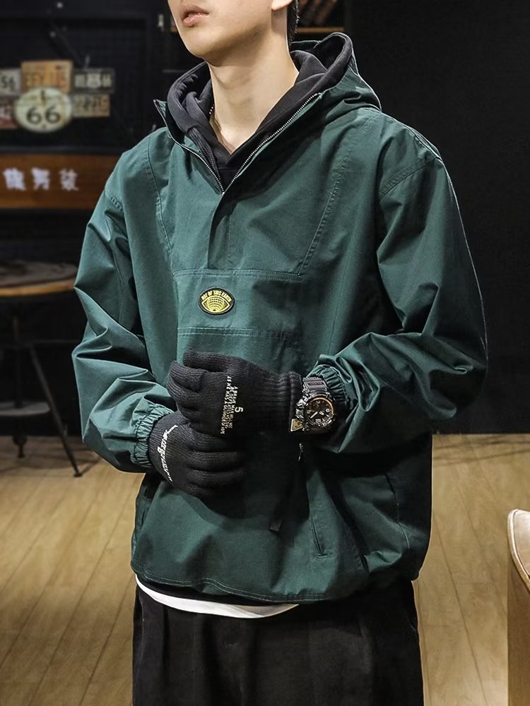 미국 스타일의 트렌디 한 브랜드 후드 자켓 남성용 루즈 트렌디 마운틴 야외 방풍 하프 Zip 풀오버 재킷