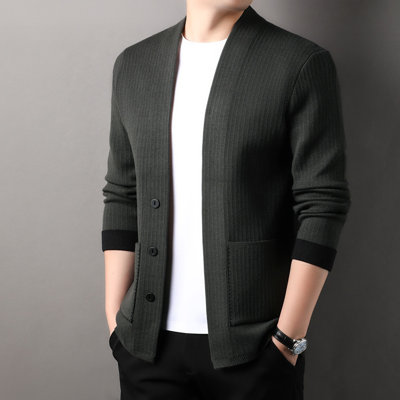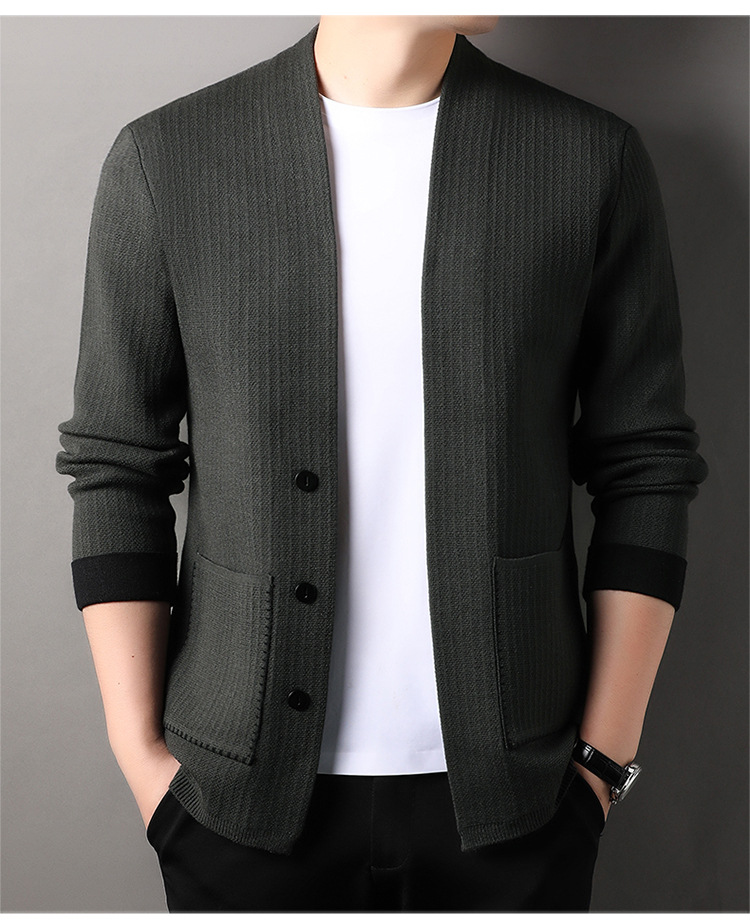 솔리드 컬러 남성 니트 카디건 봄과 가을 새로운 캐주얼 아우터 올 매치 스웨터 중년 아빠 탑 재킷스토어 가기
