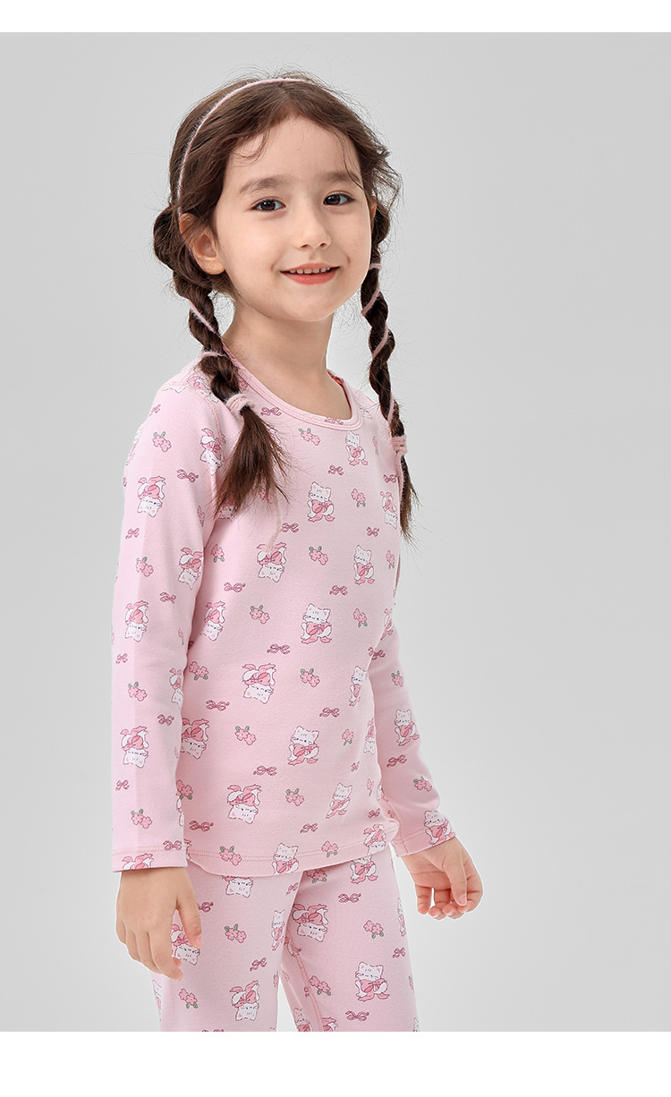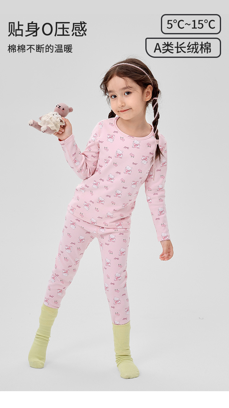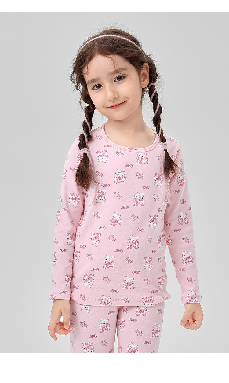 어린이 잠옷 가을과 겨울 새로운 ZYZ 활 고양이 어린이 속옷 세트 클래스 A 울 풀 랙 어린이 홈 옷