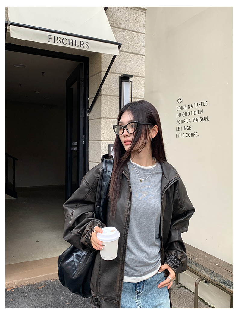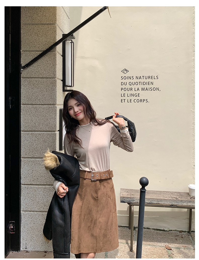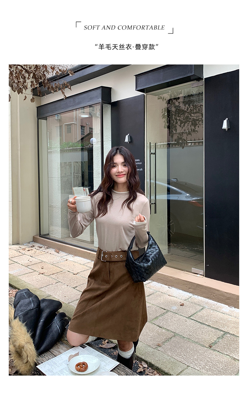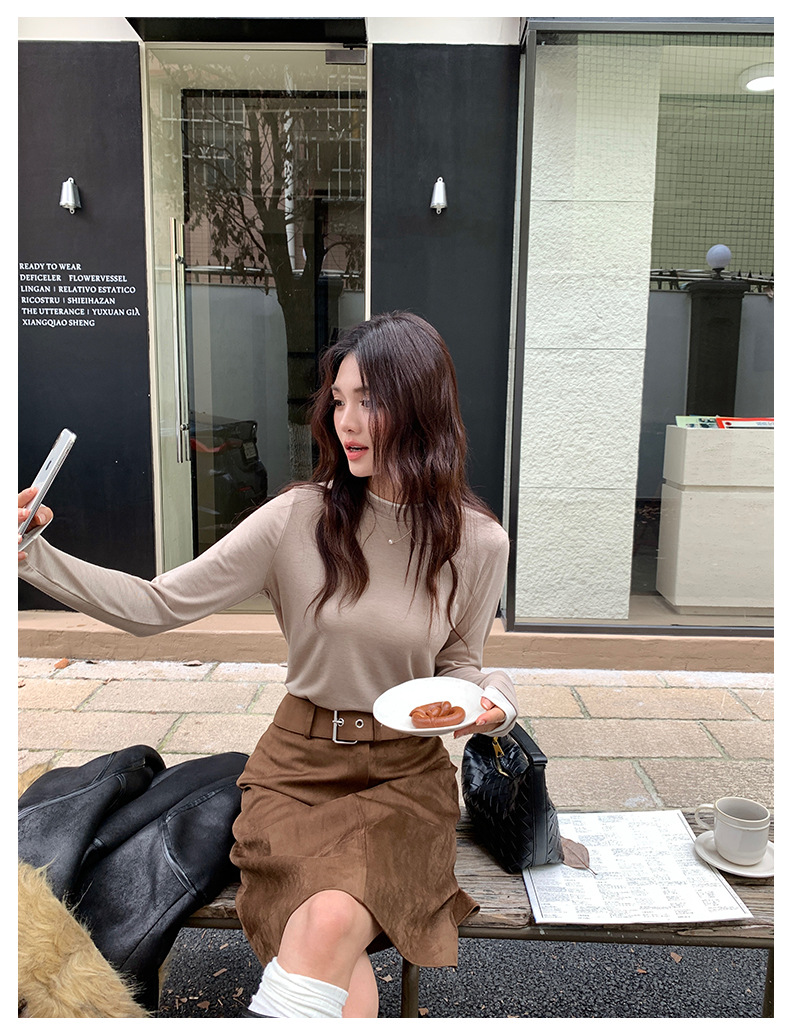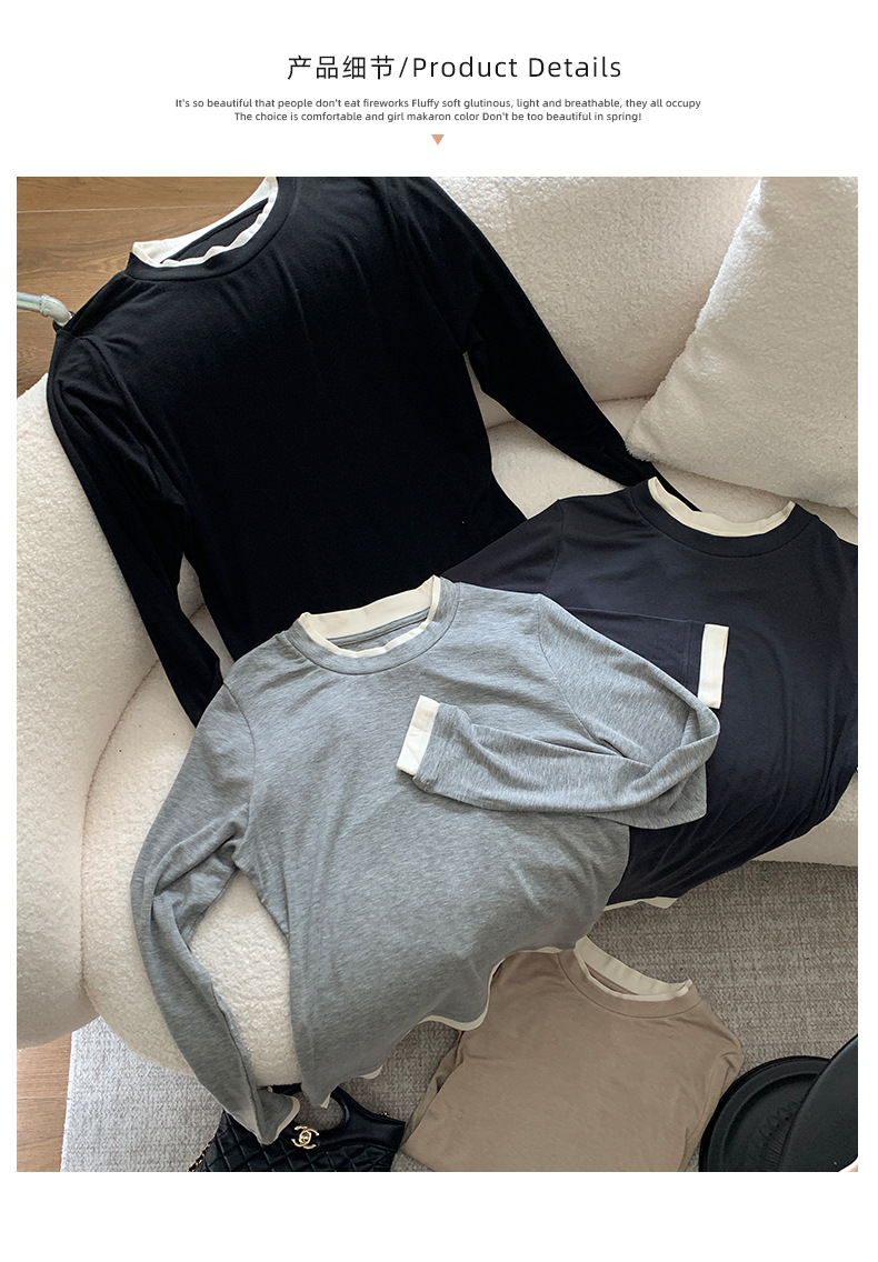 센도 가을 겨울 실크 아세테이트 이너웨어 여성용 레이어드 페이크 투피스 라운드넥 니트 심플 티셔츠 상의스토어 가기