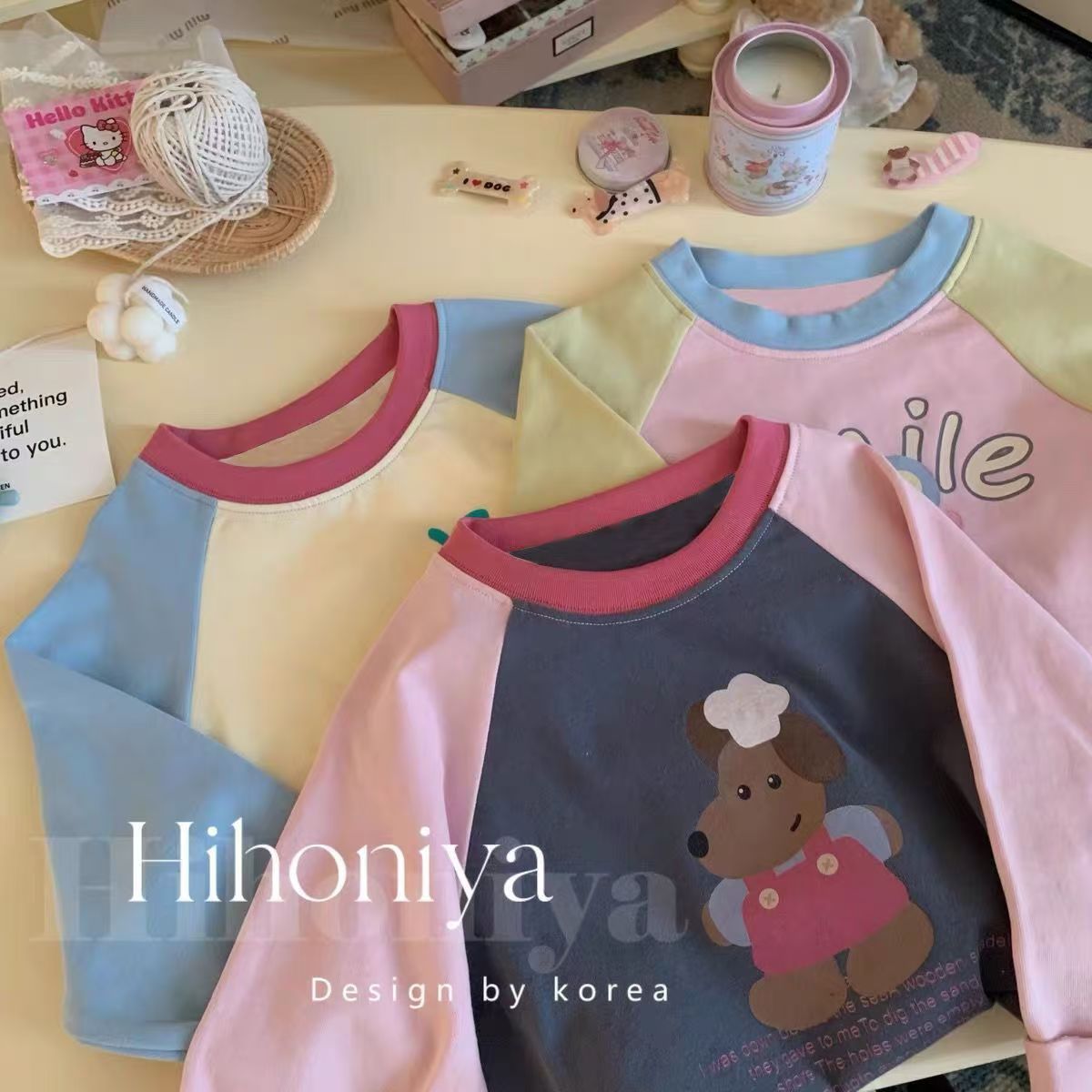 어린이 긴팔 티셔츠 봄과 가을 만화 어깨 인쇄 톱 소년 소년 소녀 아기 캐주얼 둥근 목베이스 셔츠 트렌디스토어 가기