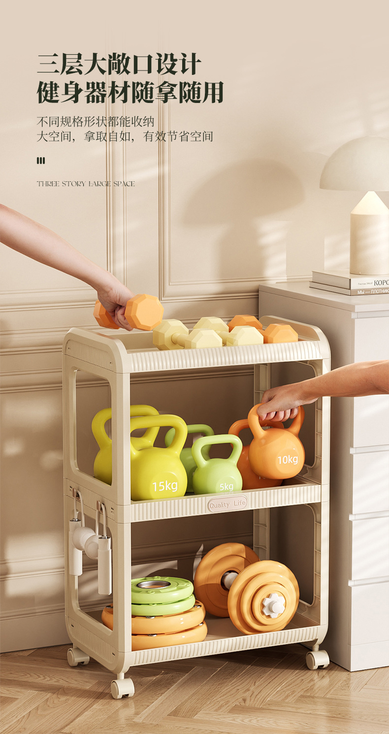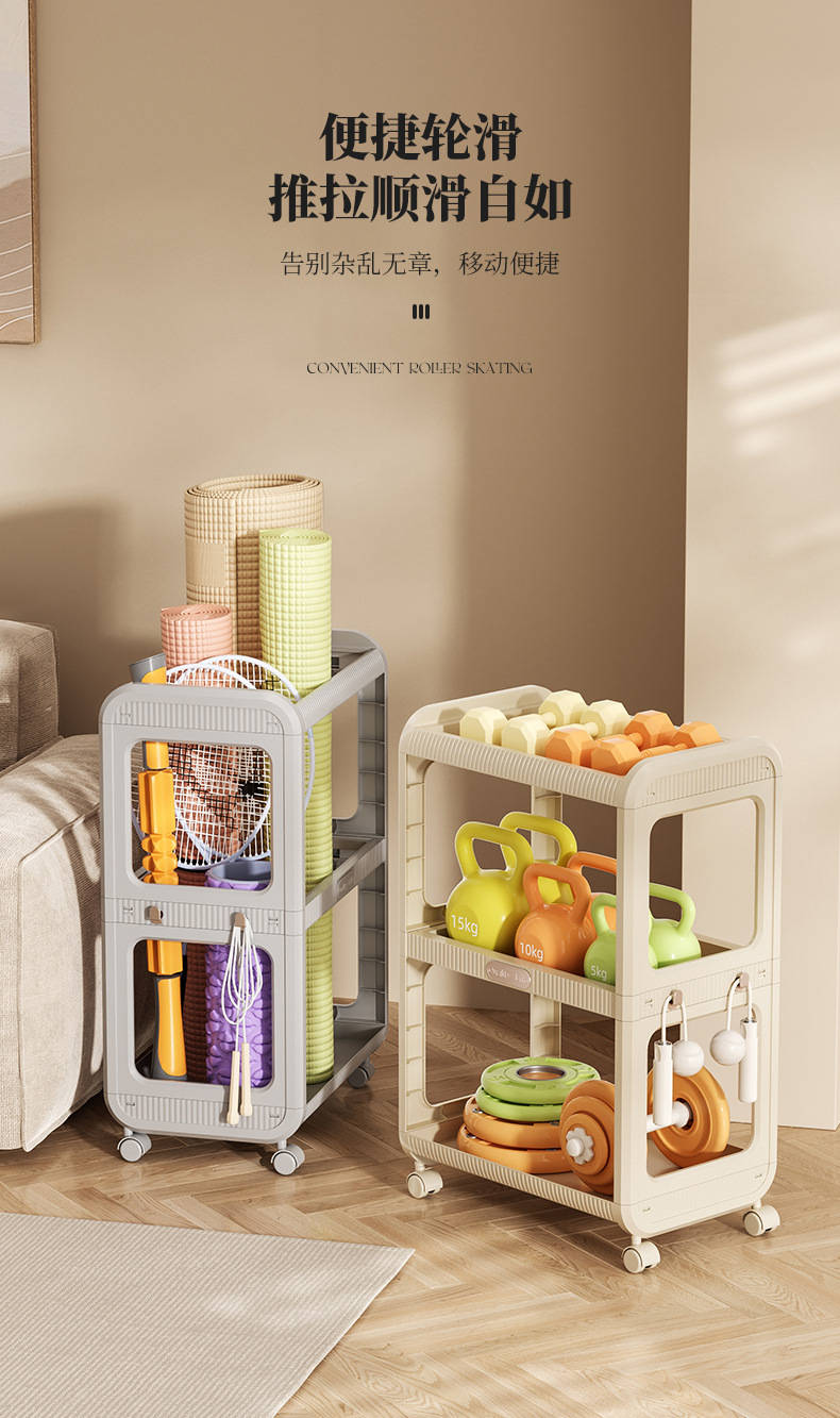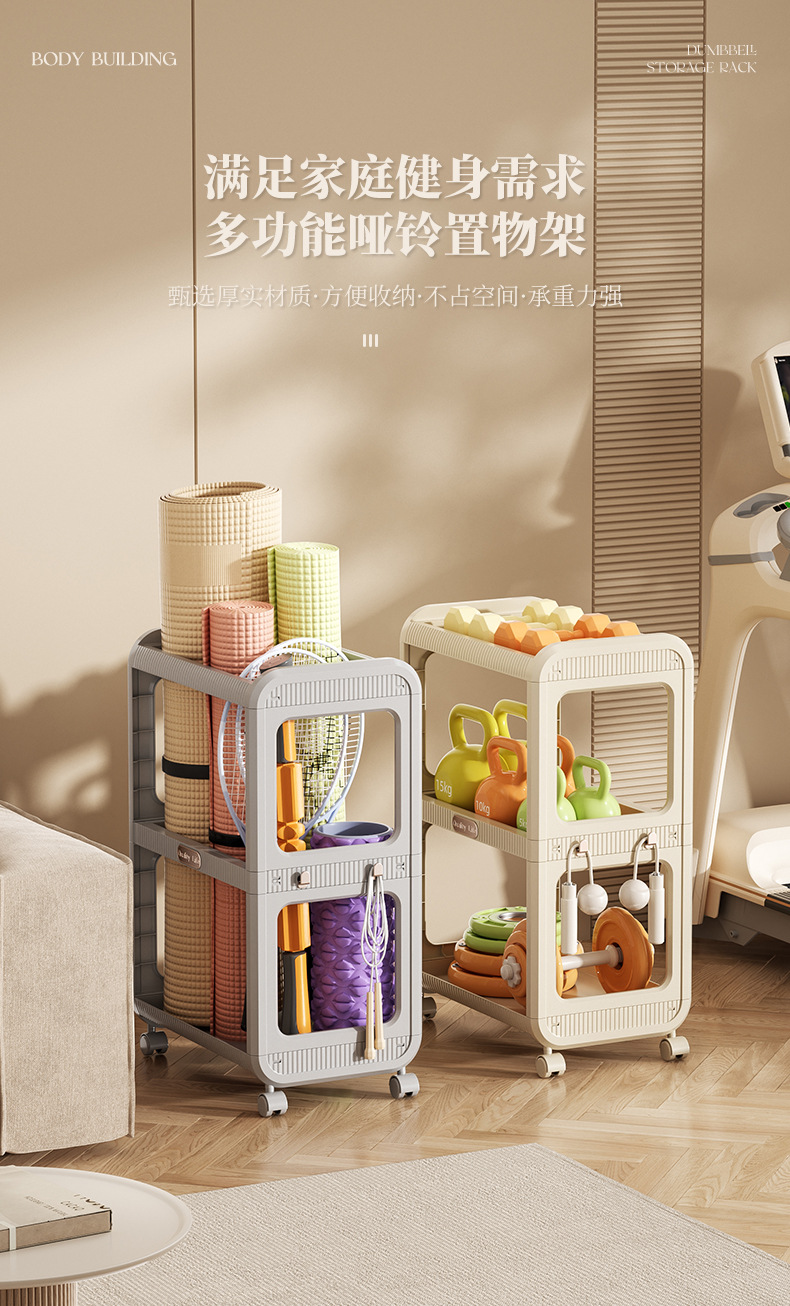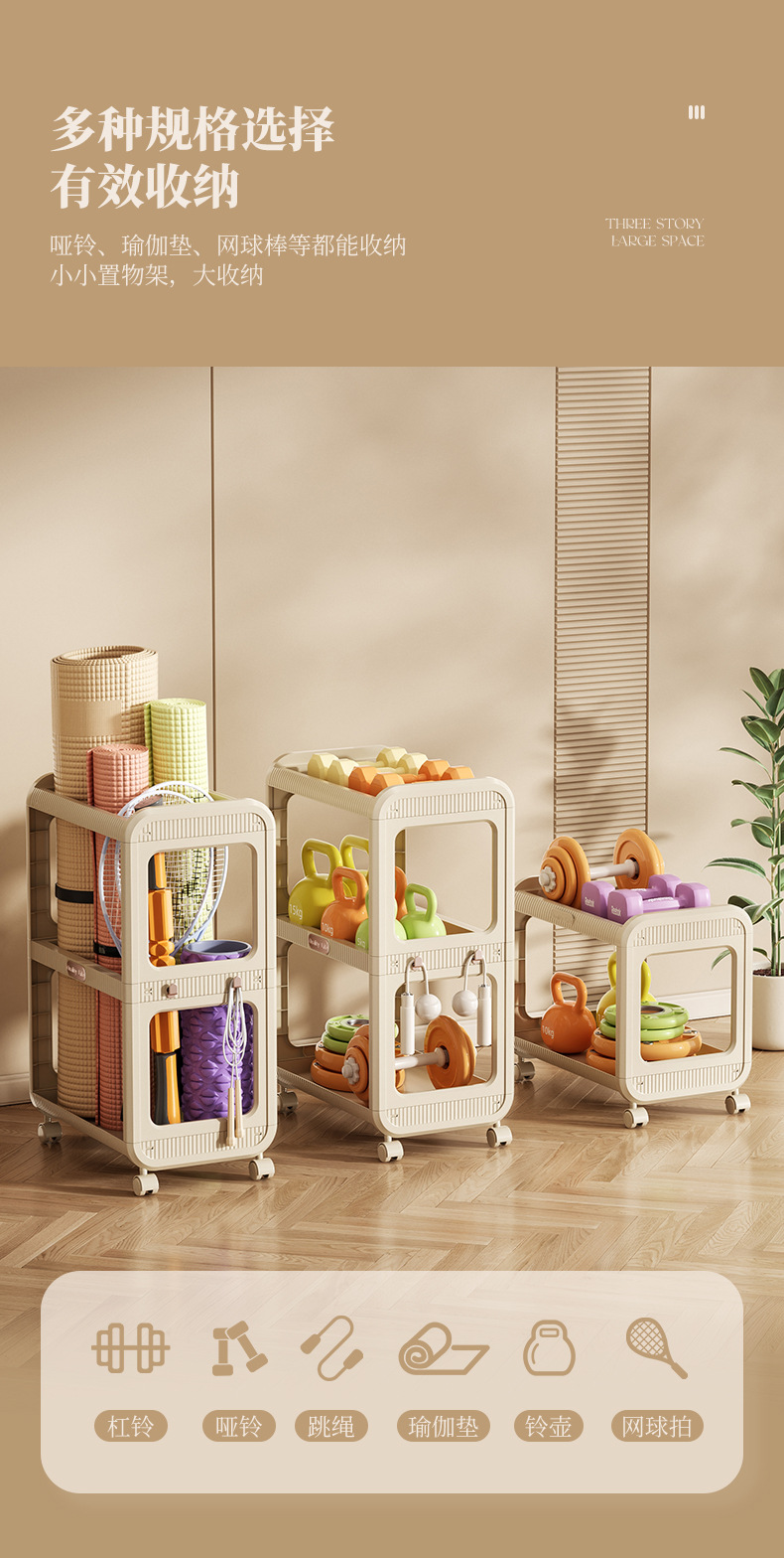 바퀴가 달린 요가 매트 보관 바구니 가정용 피트니스 스포츠 장비 저장 바구니 덤벨 저장 튜브 갭 스토리지 랙