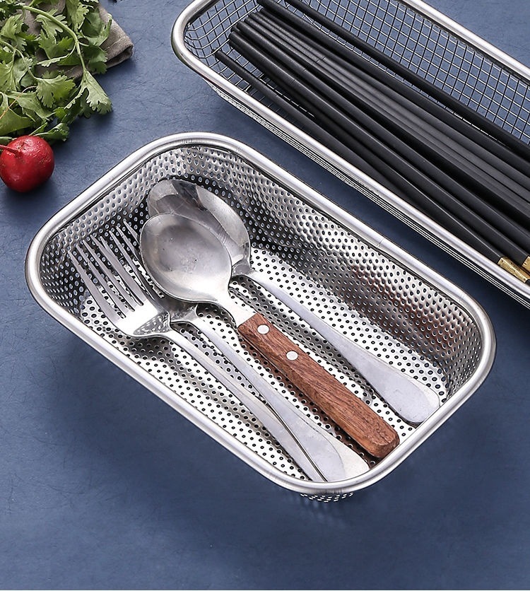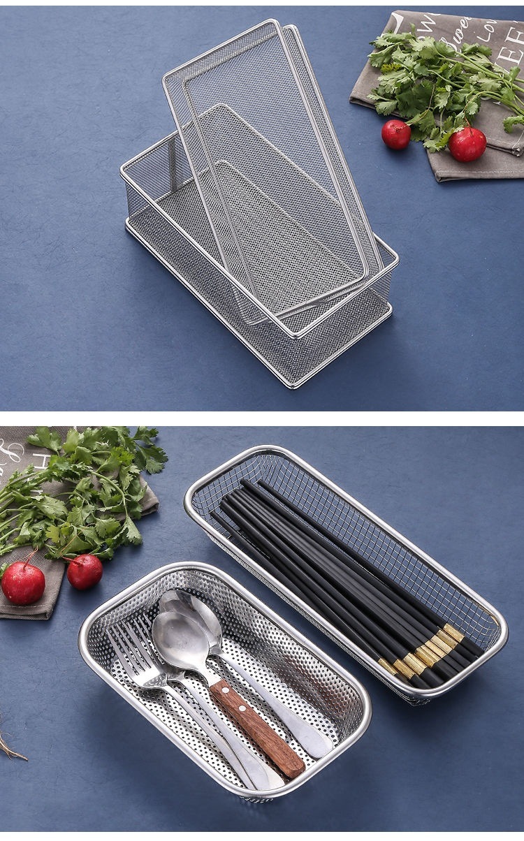 소독 캐비닛 젓가락 상자 케이지 스테인레스 스틸 젓가락 바구니 가정용 서랍 젓가락 바구니 바구니 플랫 식기 보관 상자