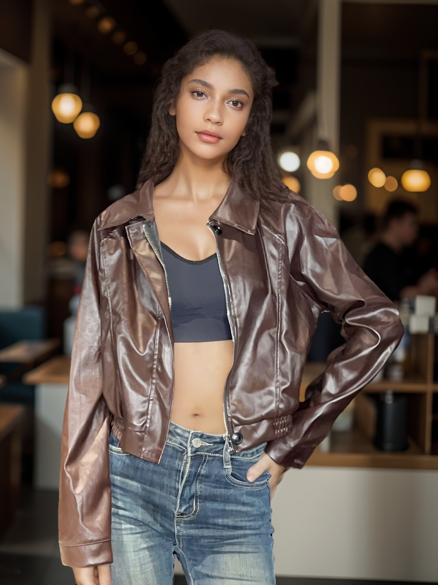 가을 새로운 Maillard 스타일 가죽 의류 여성 바이커 의류 카디건 캐주얼 재킷 유럽과 미국 패션 인기 데일리 코트
