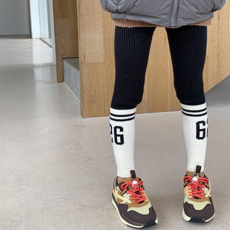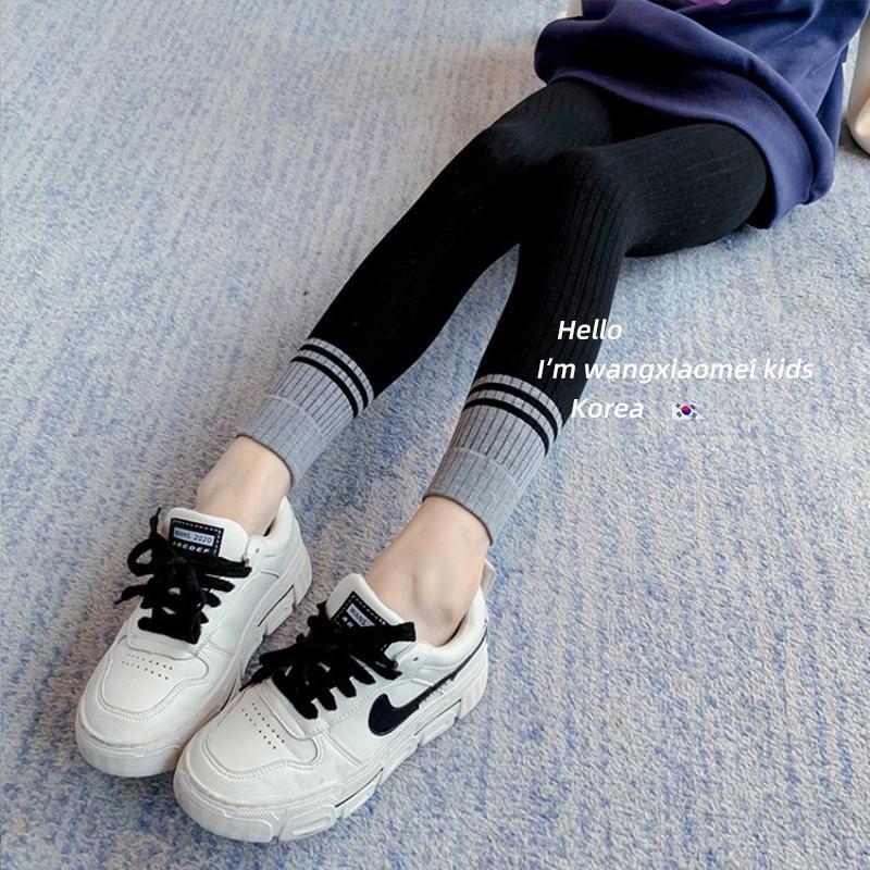 새로운 여자 레깅스 봄 가을 외주 한국 스타일 어린이 바지 높은 탄성 니트 바지 아기의 겨울 울 바지