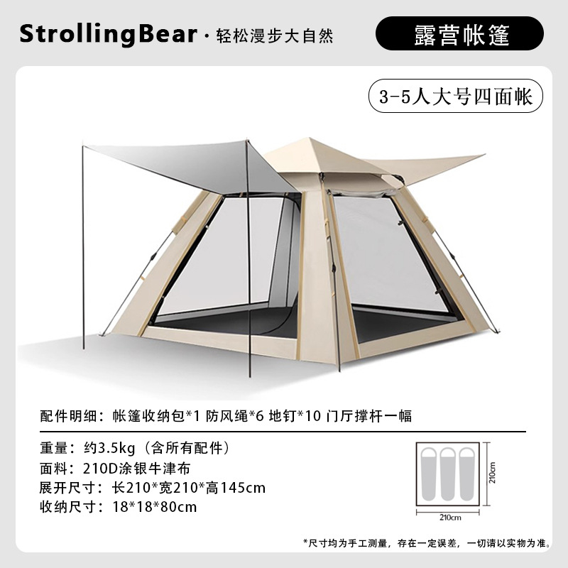 • 중형 4면 텐트 - 황백색(4~5인용)