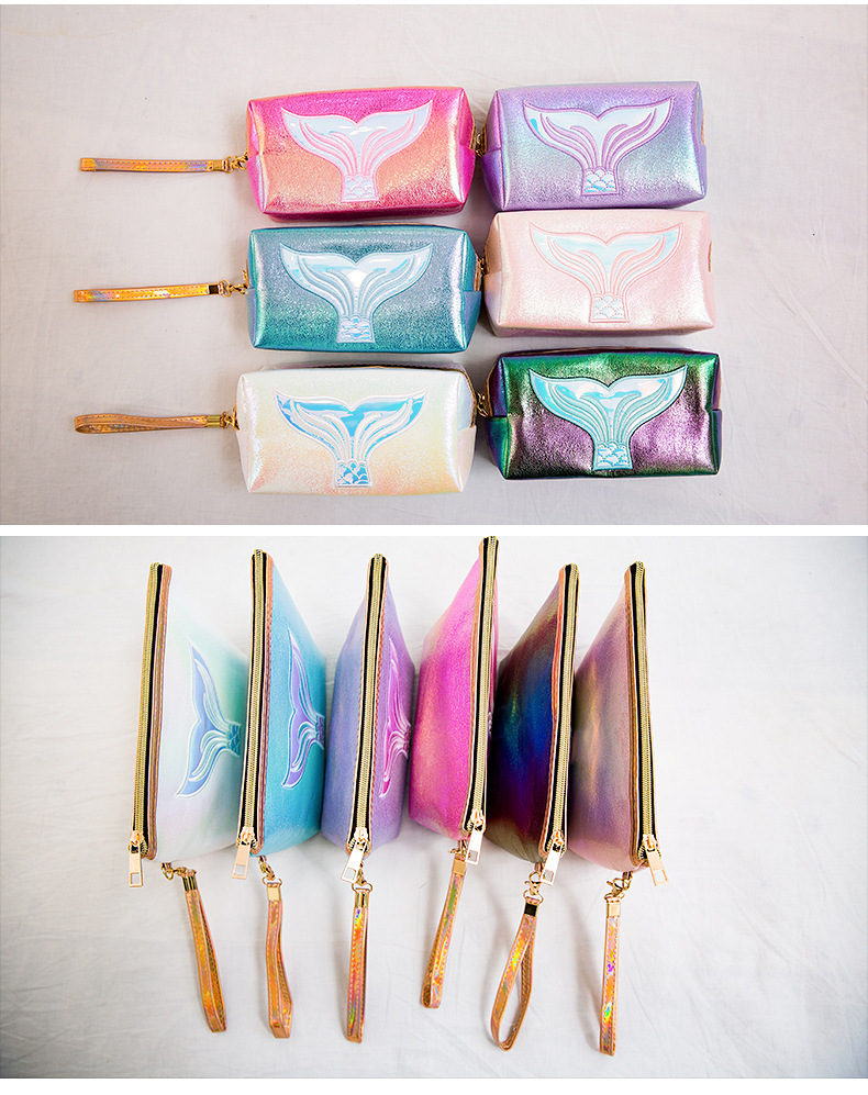 국경 간 여성 창조적 인 저장 가방 자수 물고기 꼬리 균열 pu 화장품 가방 레이저 가방 도매 재고스토어 가기