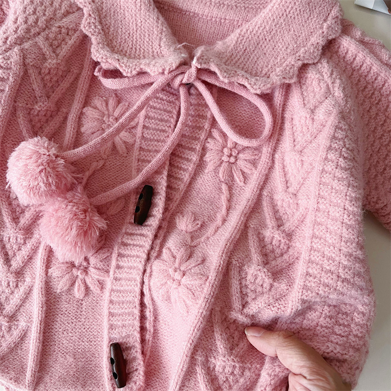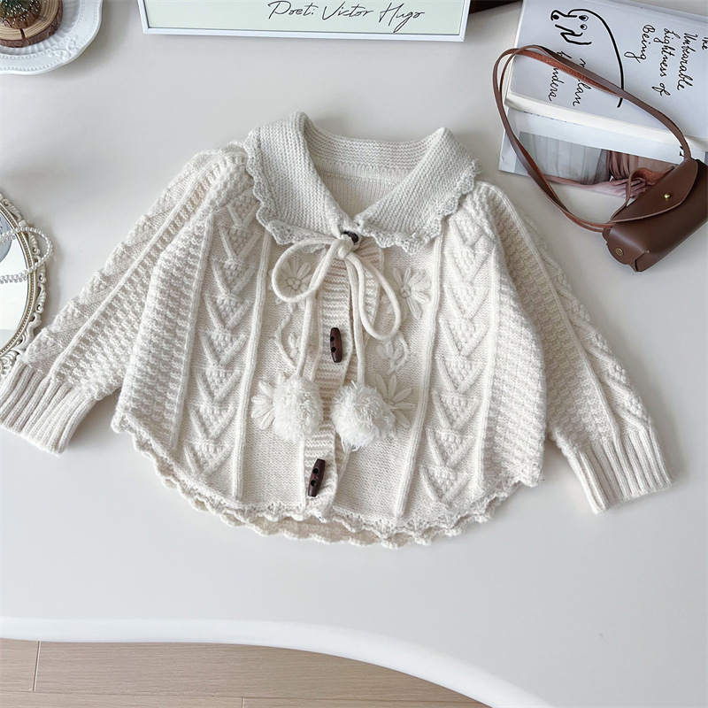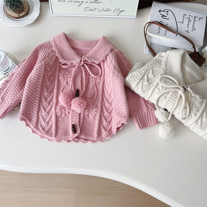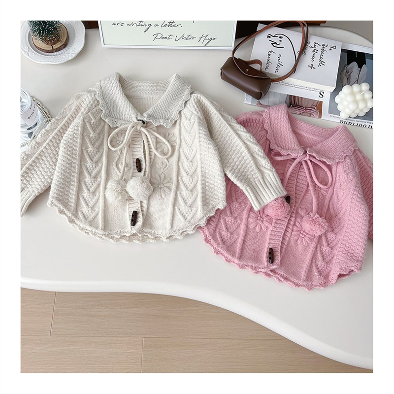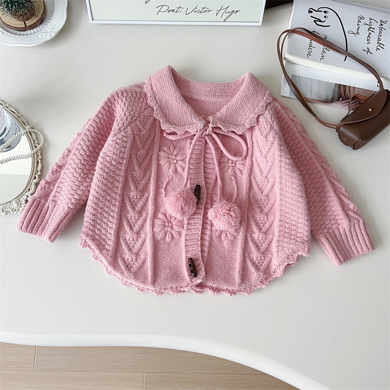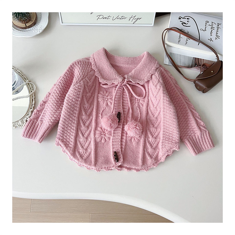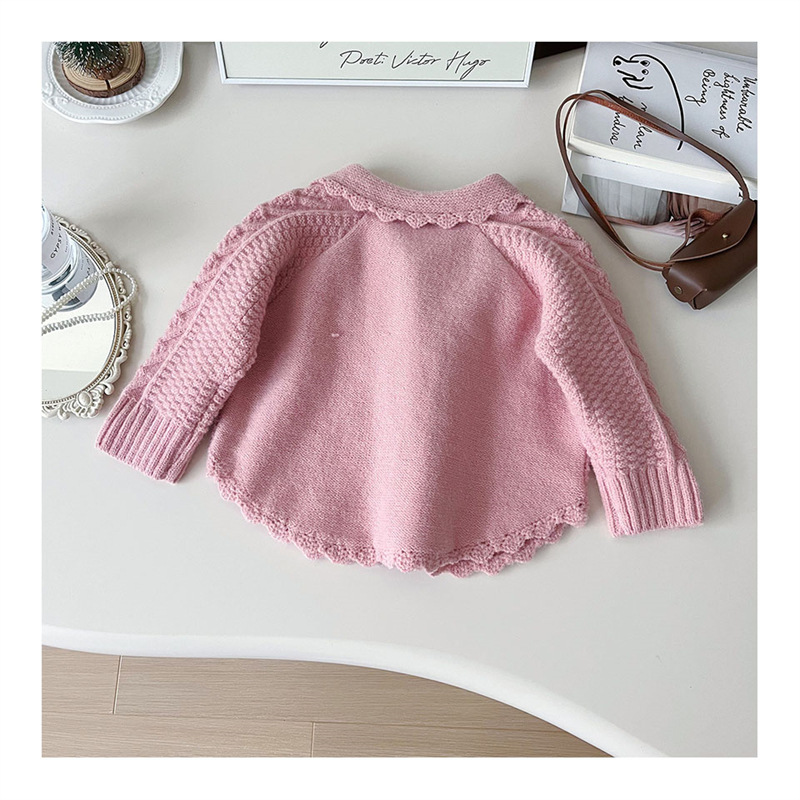 소녀 스웨터 코트 새로운 어린이 2024 봄과 가을 니트 카디건 소녀 봄과 가을 패션 옷깃 니트 카디건