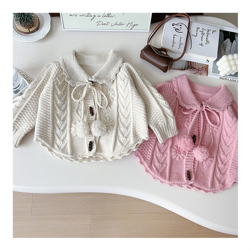 소녀 스웨터 코트 새로운 어린이 2024 봄과 가을 니트 카디건 소녀 봄과 가을 패션 옷깃 니트 카디건스토어 가기