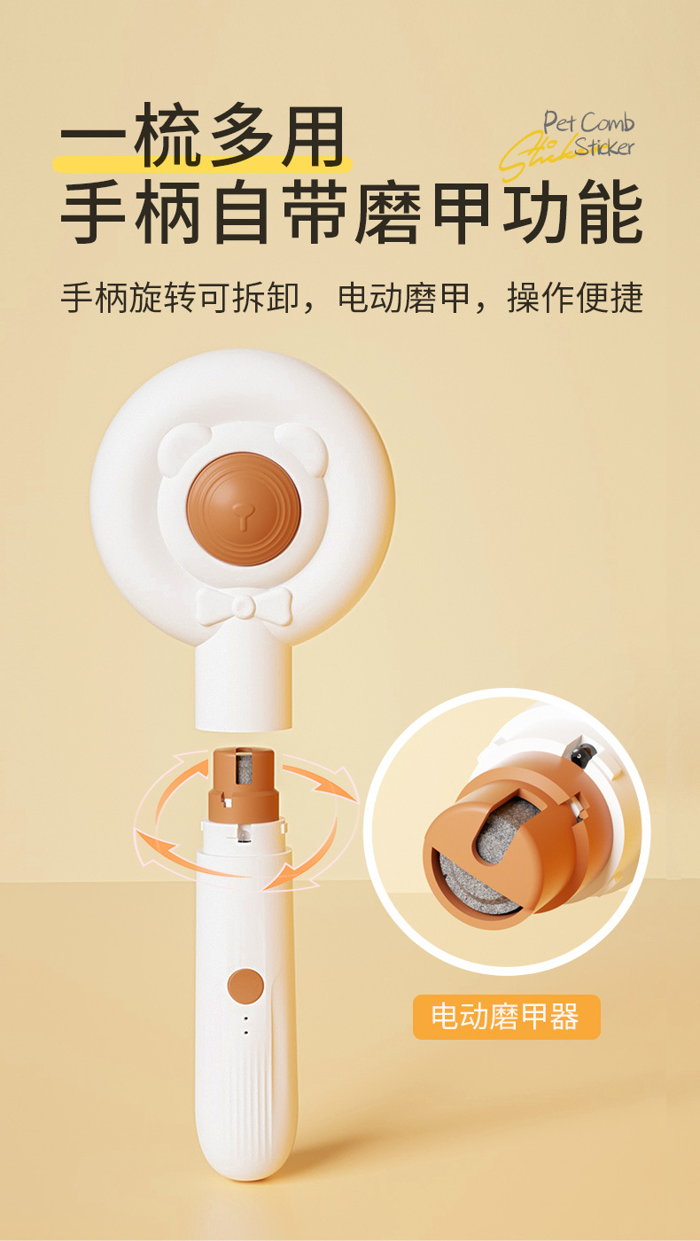 애완 동물 연삭 빗 2 대 1 충전식 전기 고양이 손톱 깎기 고양이 개 청소 아름다움 빗 애완 동물 빗