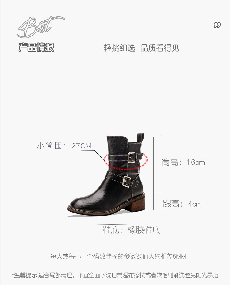 Maillard Vintage Old Chunky Heel Knights 부츠 여자 2024 새로운 올 매치 봄과 가을 벨트 버클 라운드 발가락 두꺼운 부츠