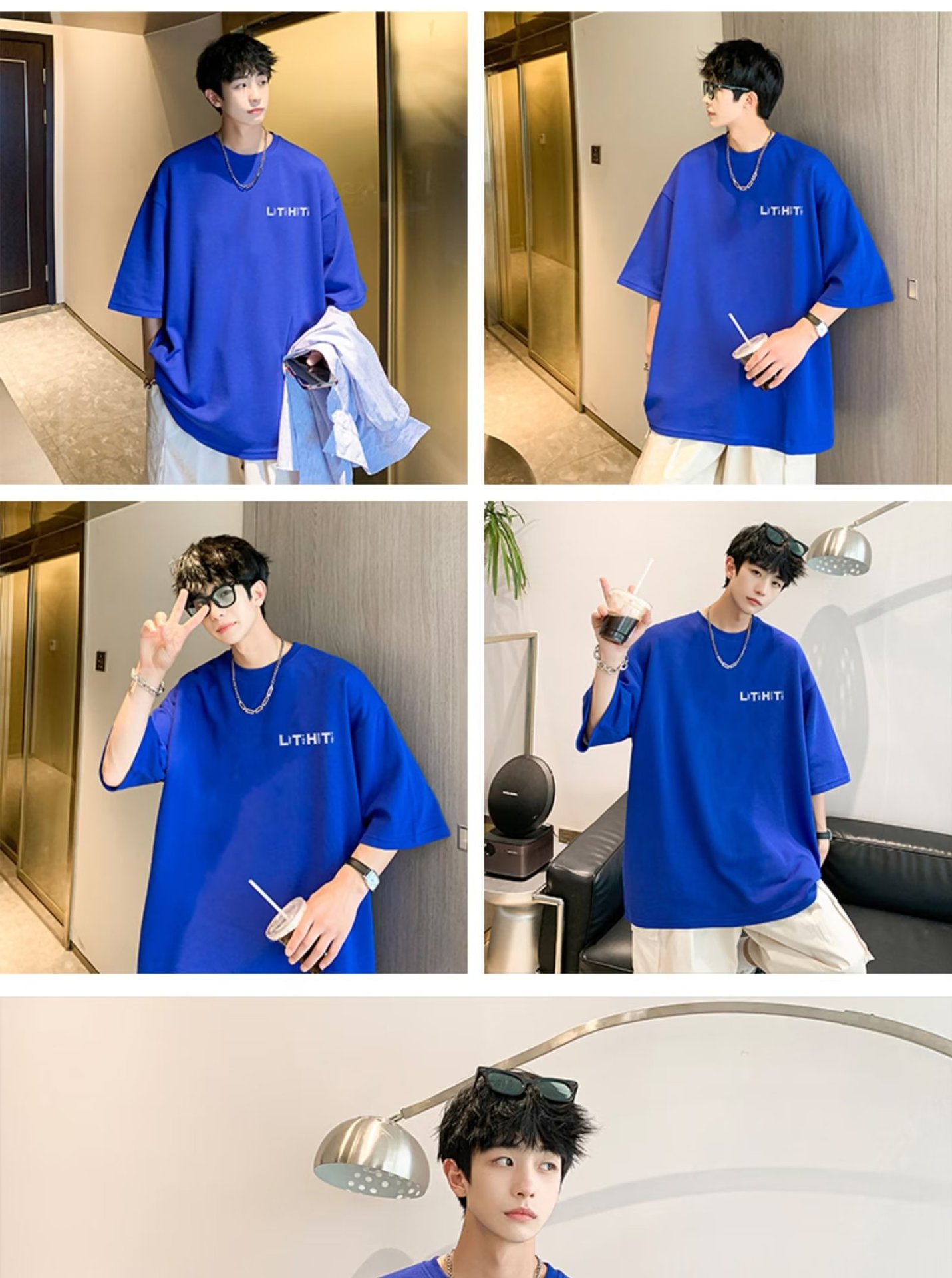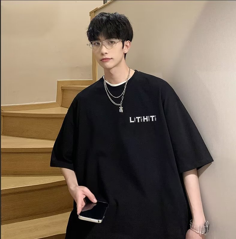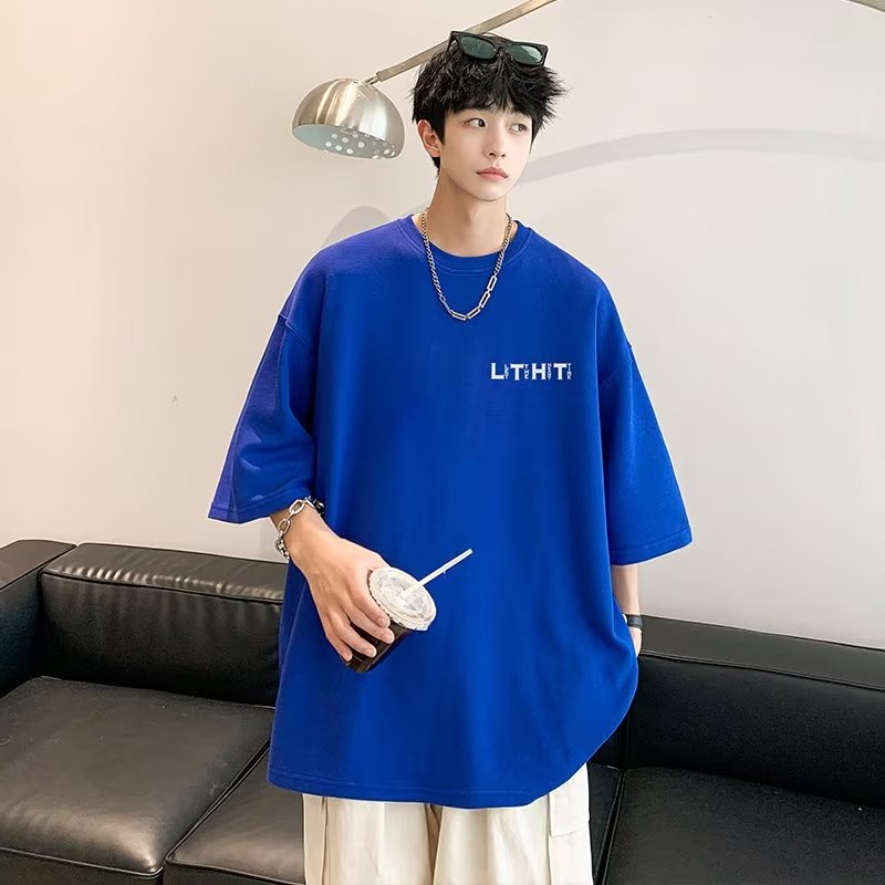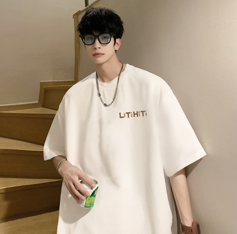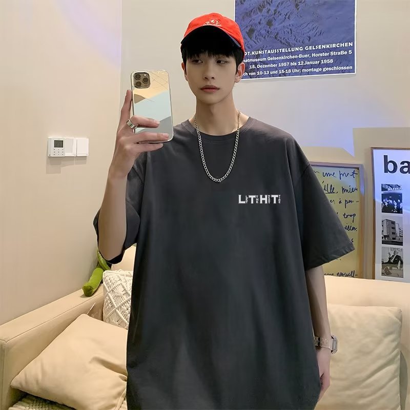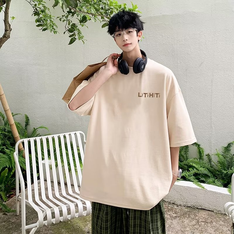 국경 간 반팔 소년 여름 무거운 티셔츠 트렌디 브랜드 패션 2024 새로운 느슨한 미국식 작은 어깨 옷스토어 가기