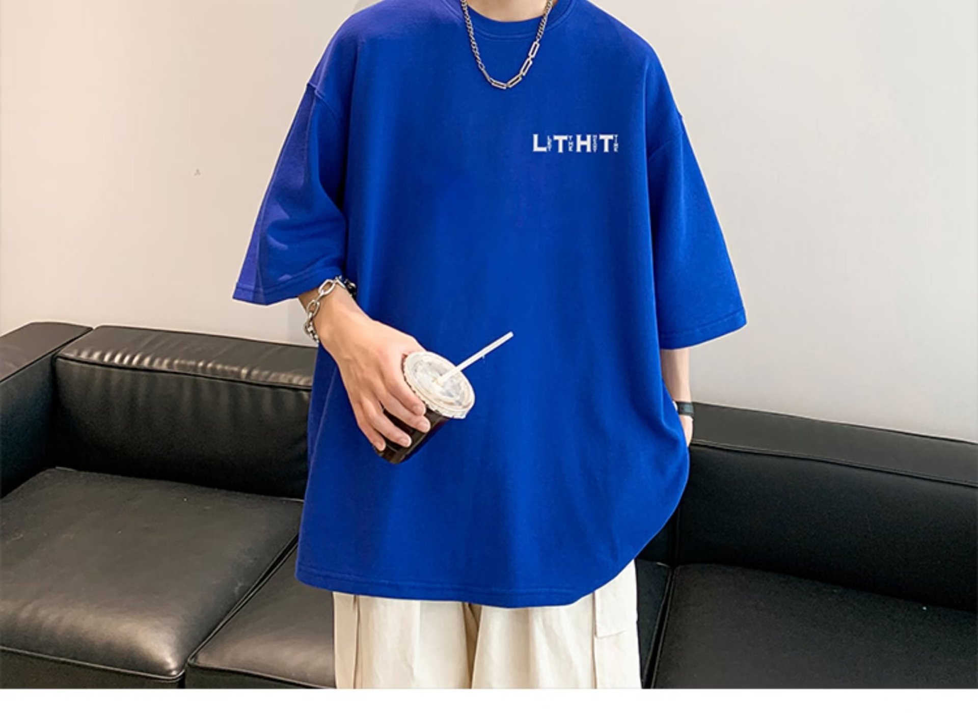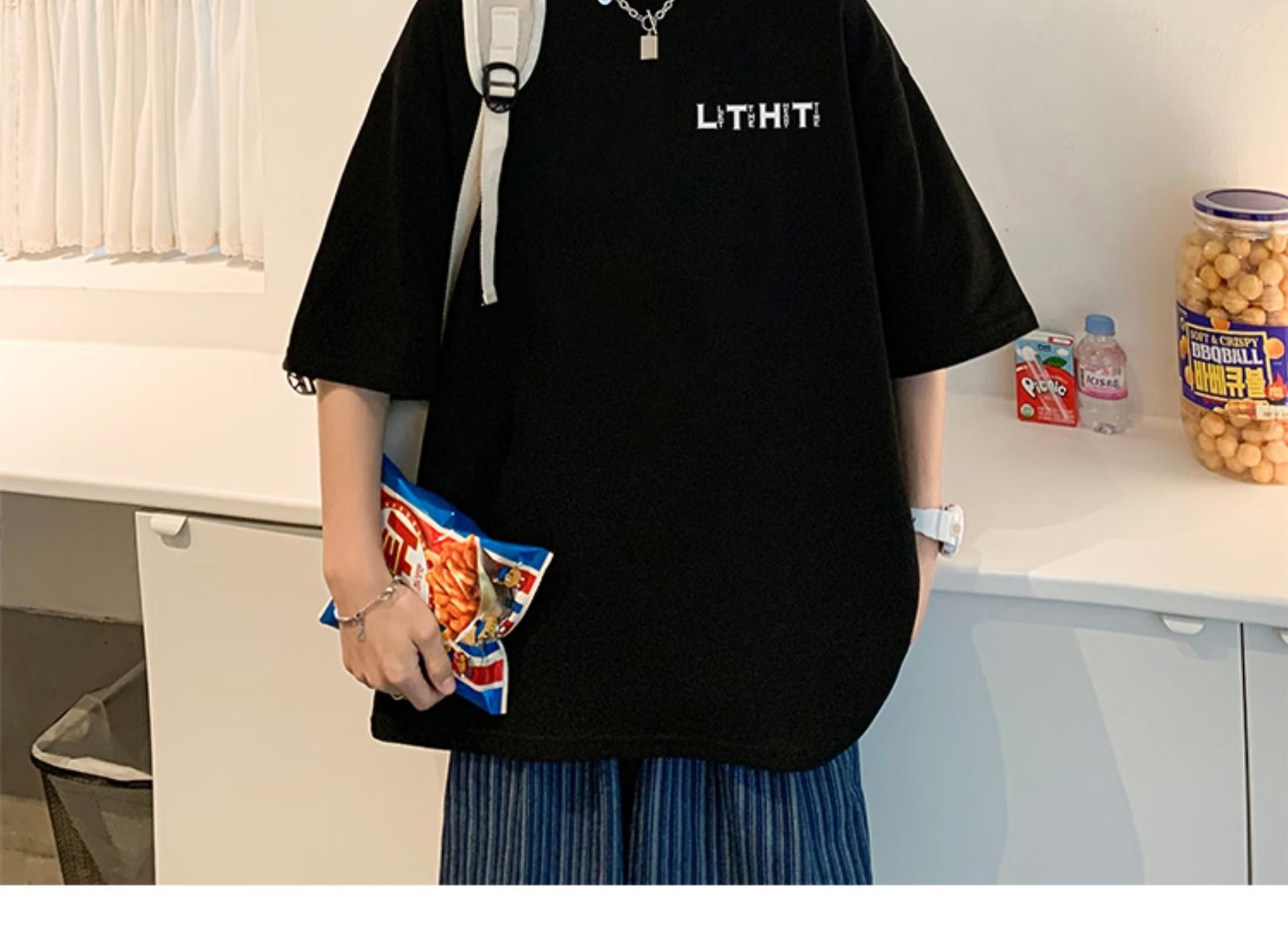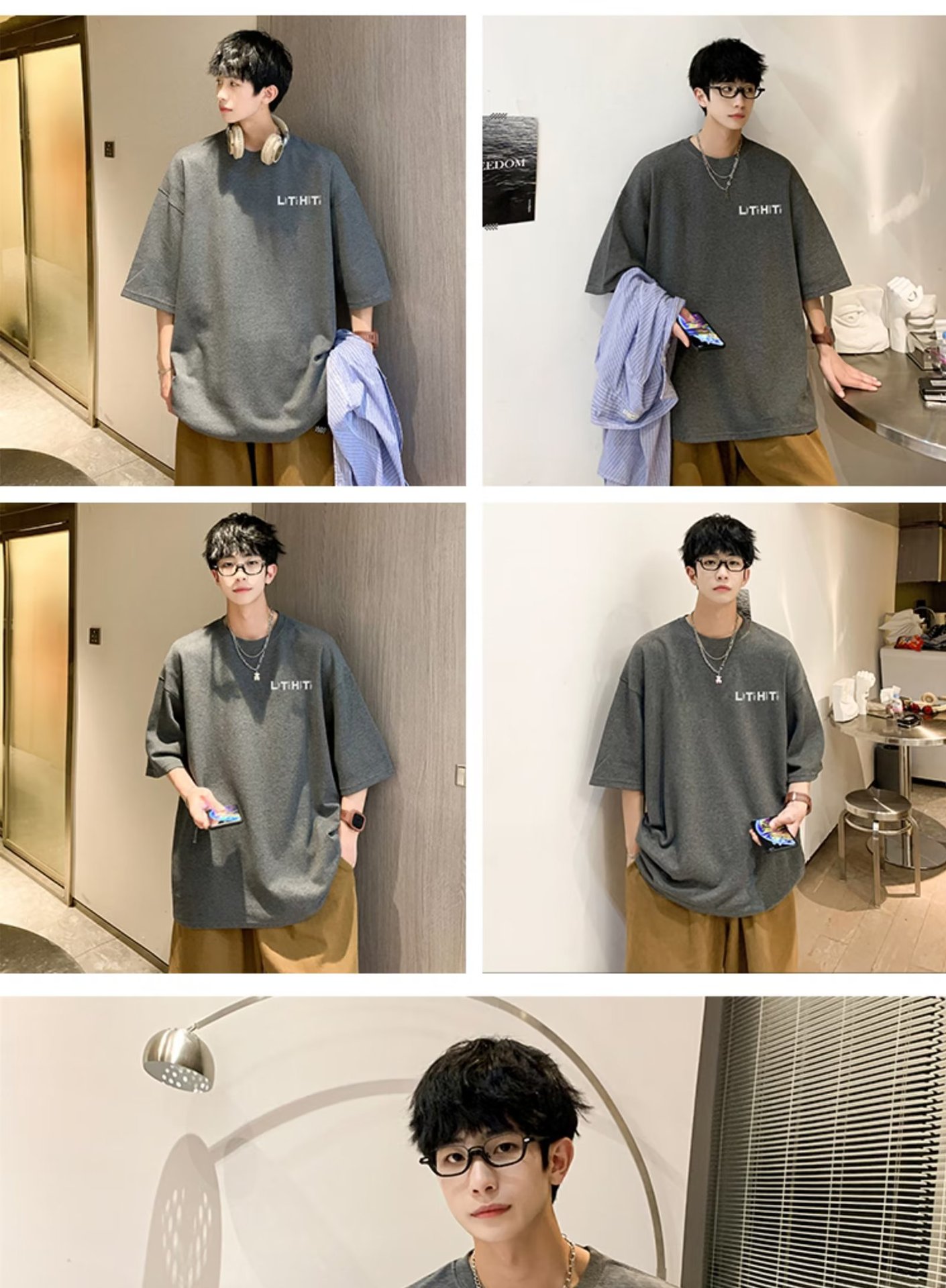 국경 간 반팔 소년 여름 무거운 티셔츠 트렌디 브랜드 패션 2024 새로운 느슨한 미국식 작은 어깨 옷스토어 가기