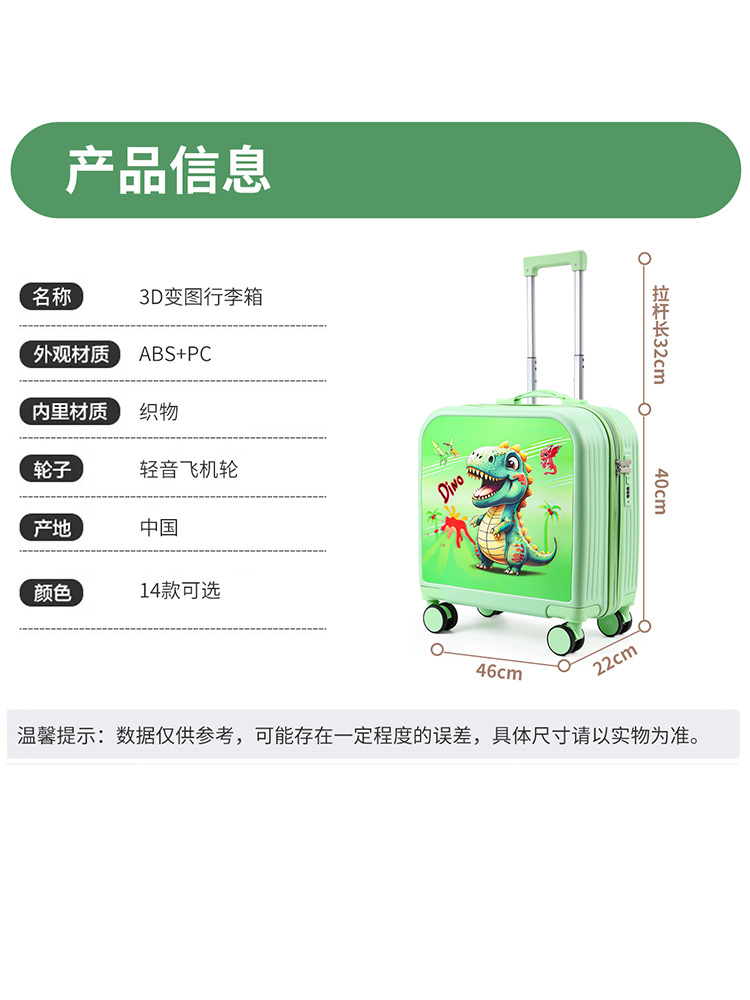 공장 도매 18 인치 어린이 여행 가방 가변 3D 패턴 만화 수하물은 탑승 할 수 있습니다 조합 자물쇠 트롤리 케이스