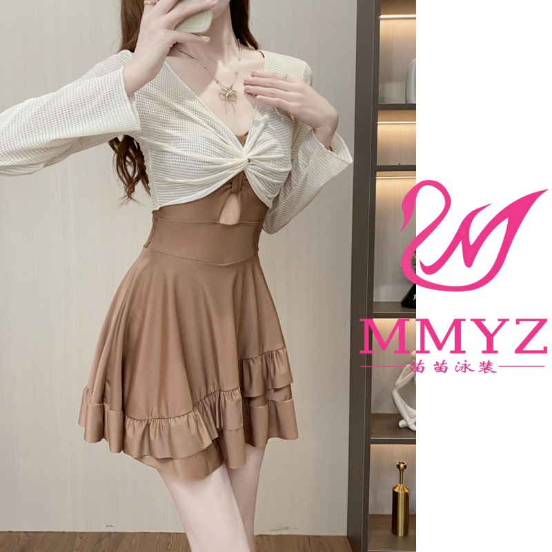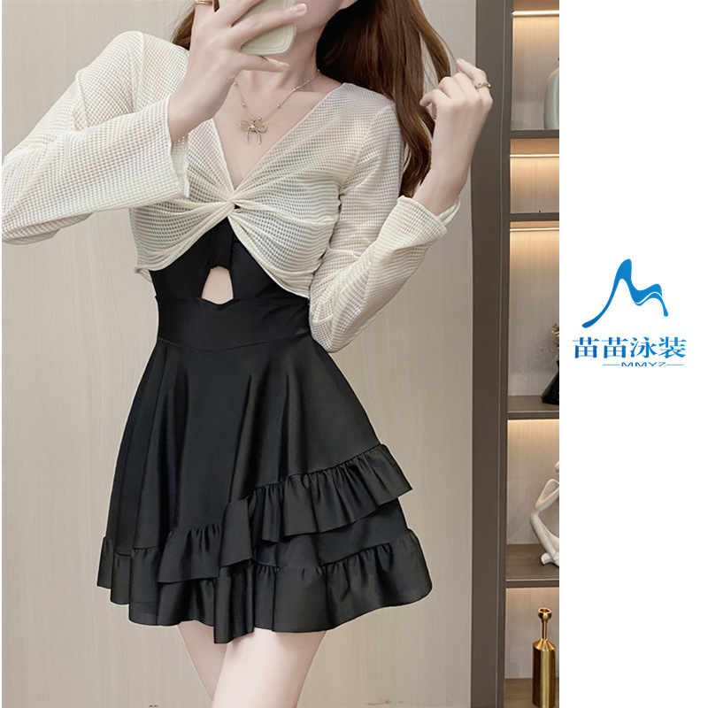 페어리 스타일 긴 소매 블라우스 수영복 여성용 원피스 복서 원피스 핫 스타일 섹시한 벨리 커버 슬리밍 온천 스커트 여성용 수영복스토어 가기