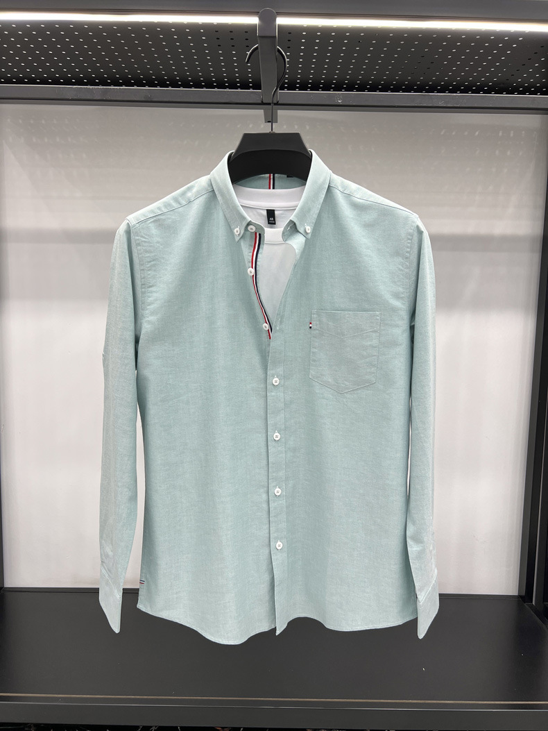 남성용 봄과 가을 컬러 스트립 바느질 긴팔 하이 엔드 퓨어 코튼 셔츠 청소년 솔리드 컬러 비즈니스 캐주얼 포켓 셔츠 트렌디스토어 가기