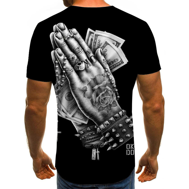 공장 공급 WISHEBAY 새로운 개인화 된 창조적 인 손 3D 디지털 인쇄 남성 캐주얼 반팔 티셔츠스토어 가기
