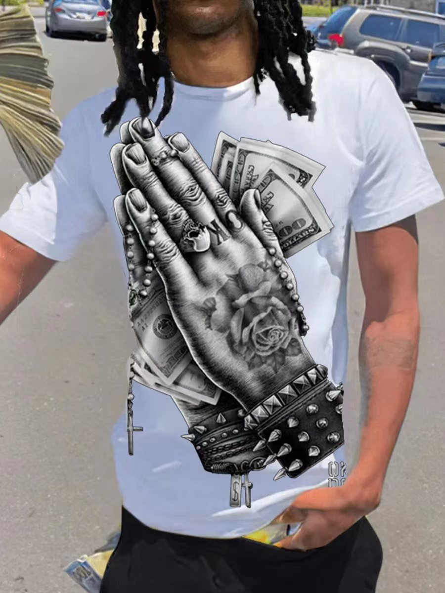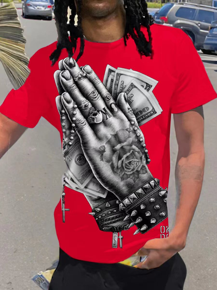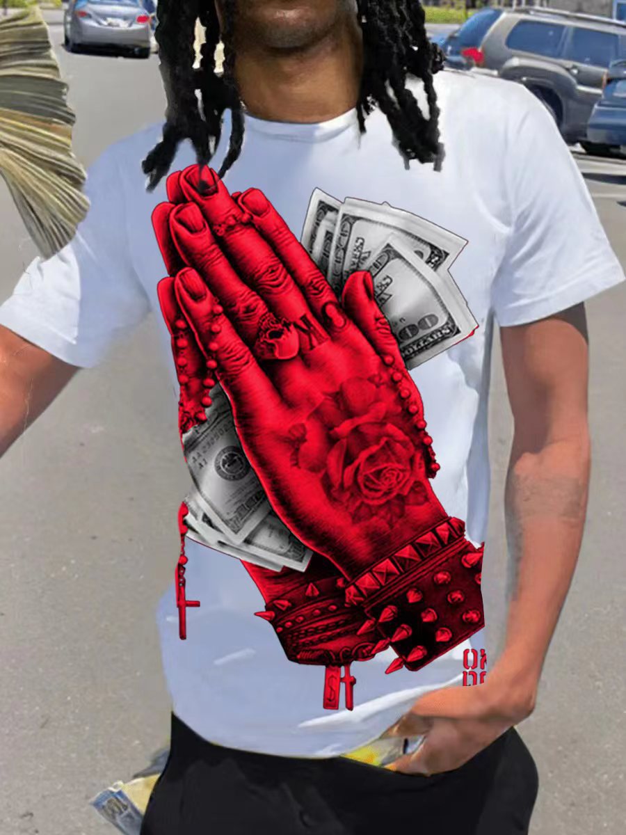 공장 공급 WISHEBAY 새로운 개인화 된 창조적 인 손 3D 디지털 인쇄 남성 캐주얼 반팔 티셔츠
