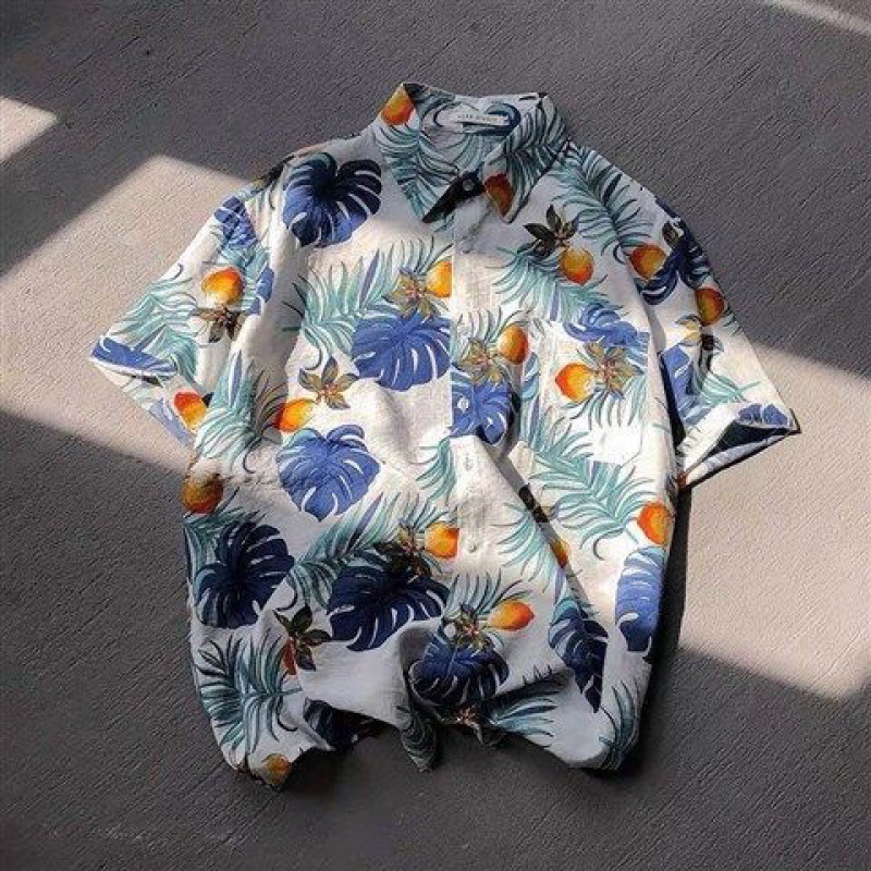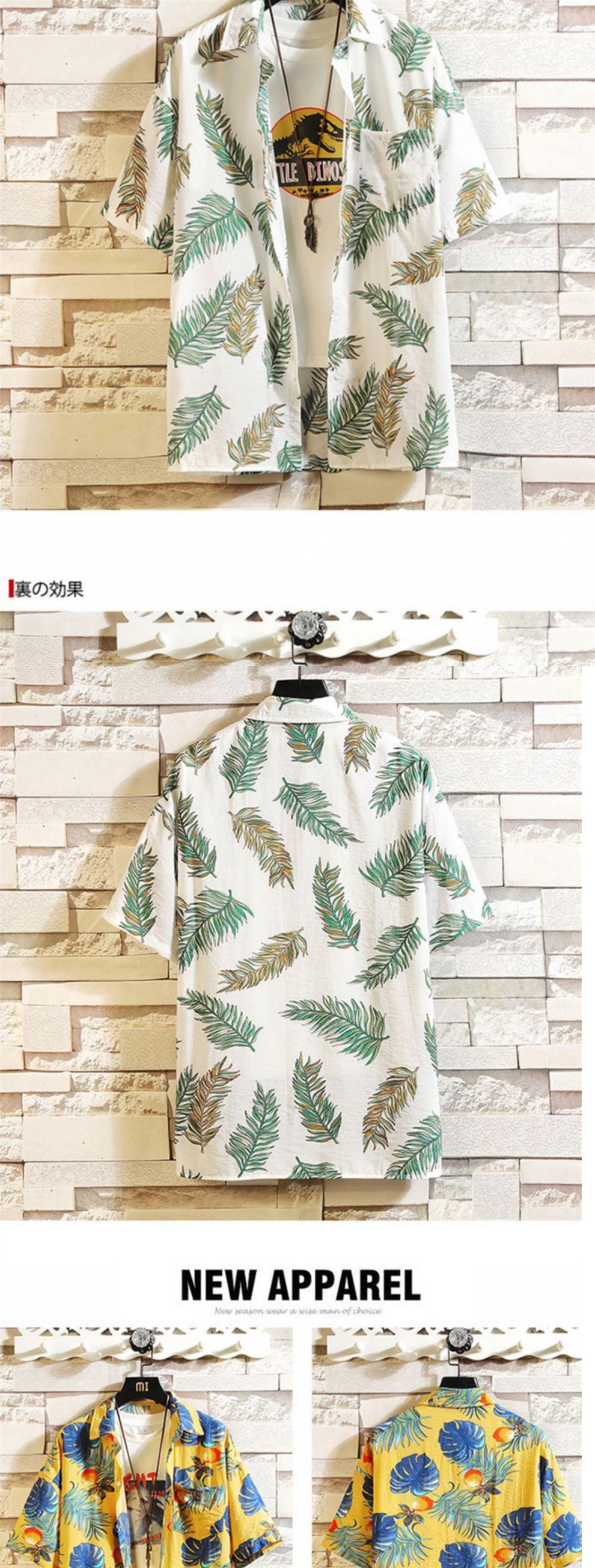 夏威夷衫日系花衬短袖男士宽松复古沙滩花衬衣薄款外套代发亚马逊스토어 가기