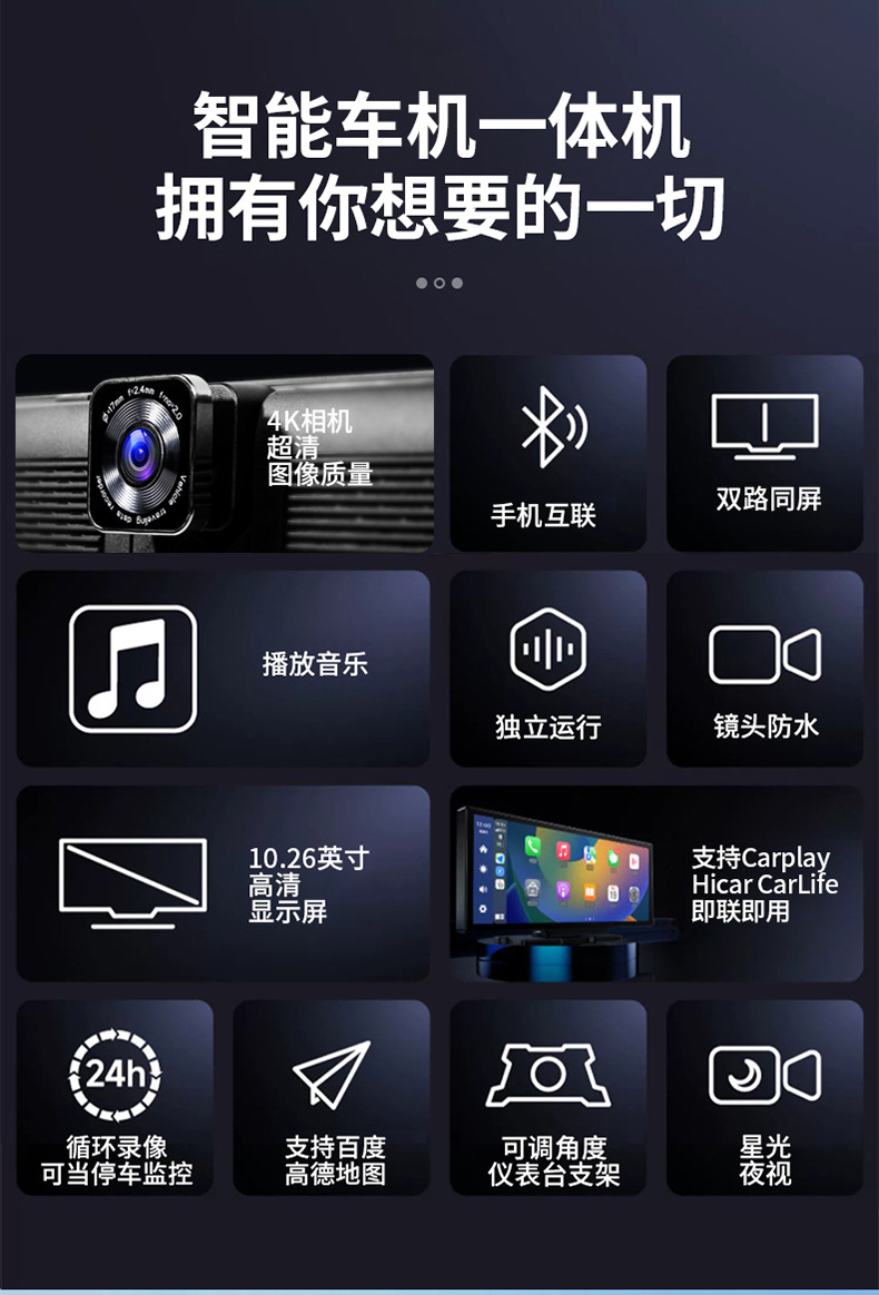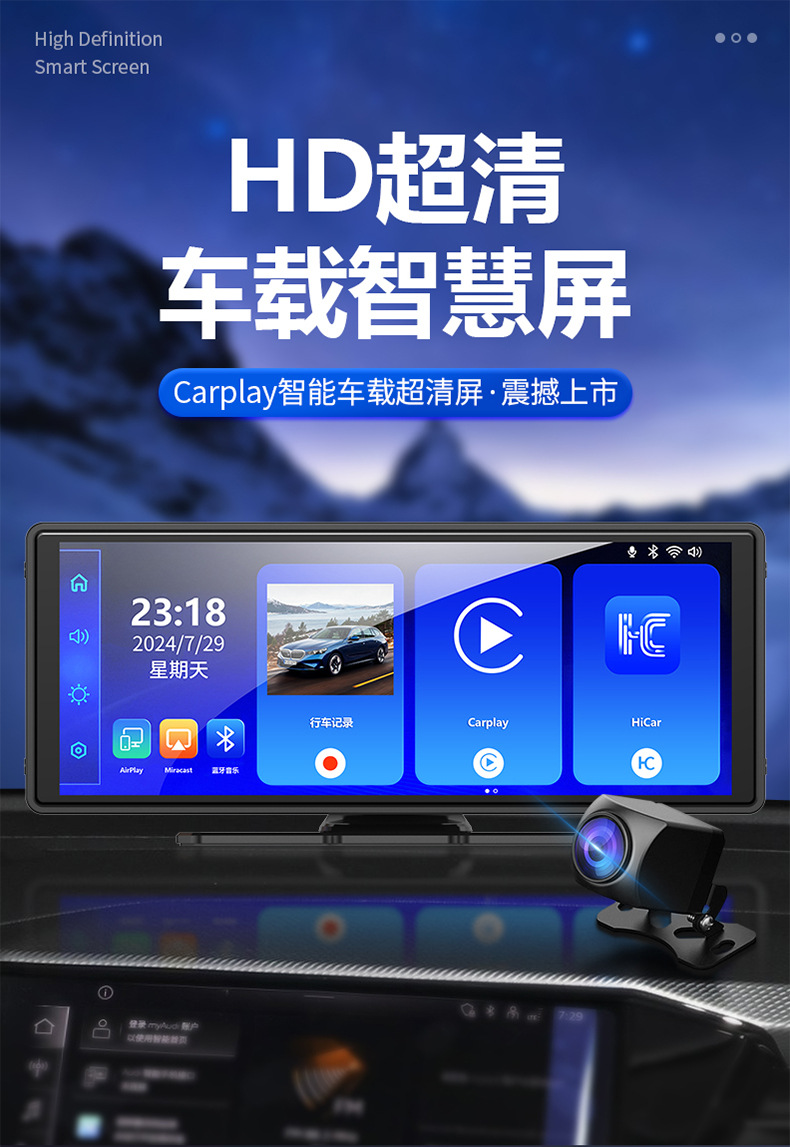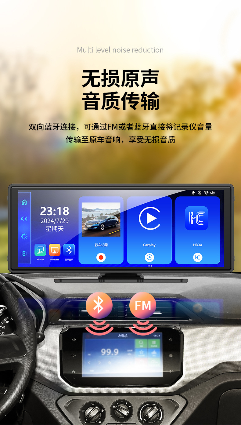 10.26 인치 cayplay 듀얼 레코딩 자동차 레코더 블루투스 플레이어 PND 핸즈프리 FM 스마트 스크린