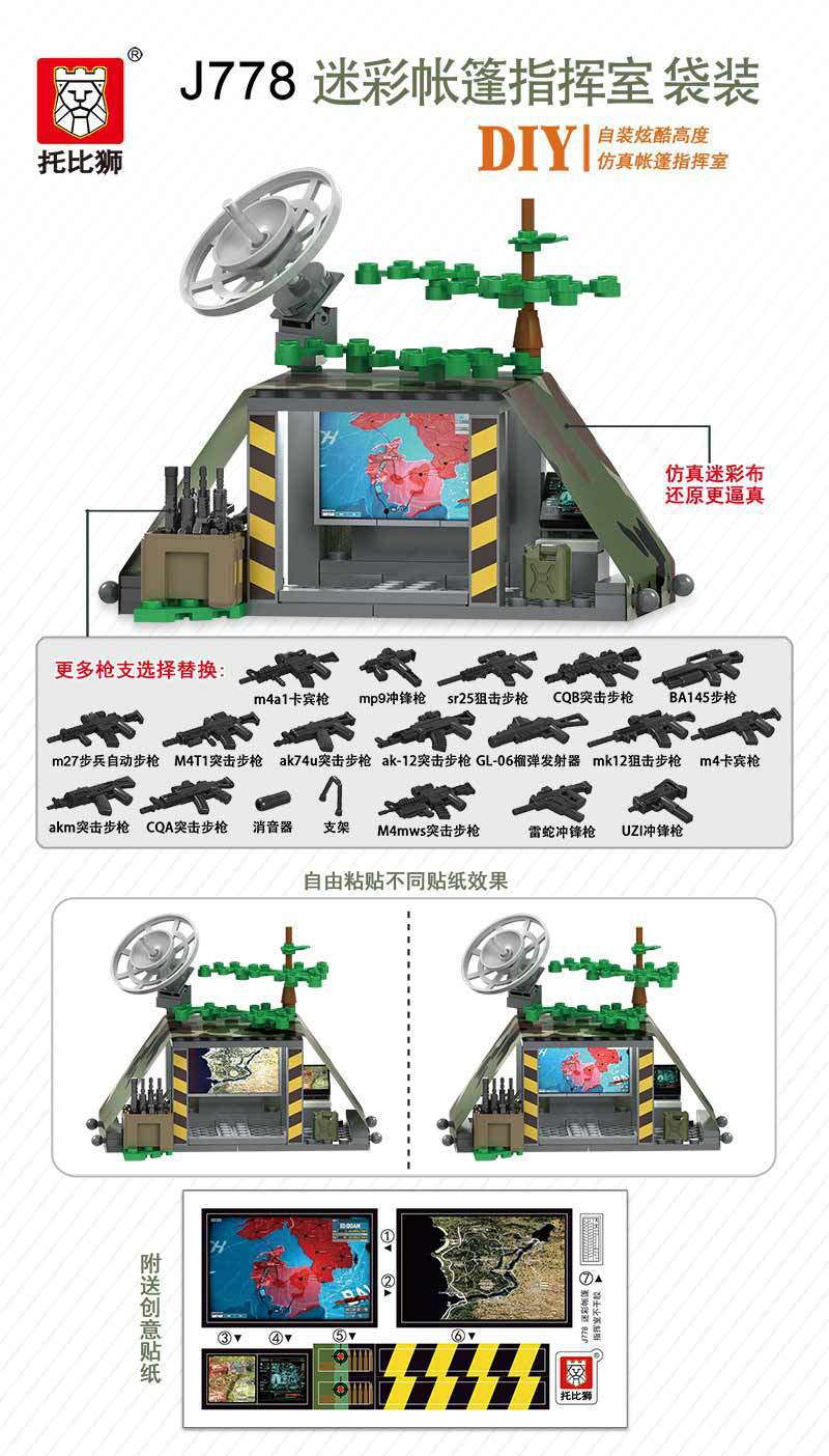 토비라이언 J778 가방형 현대식 위장 텐트 지휘실 다양한 무기 및 장비 소형 조립 블록스토어 가기